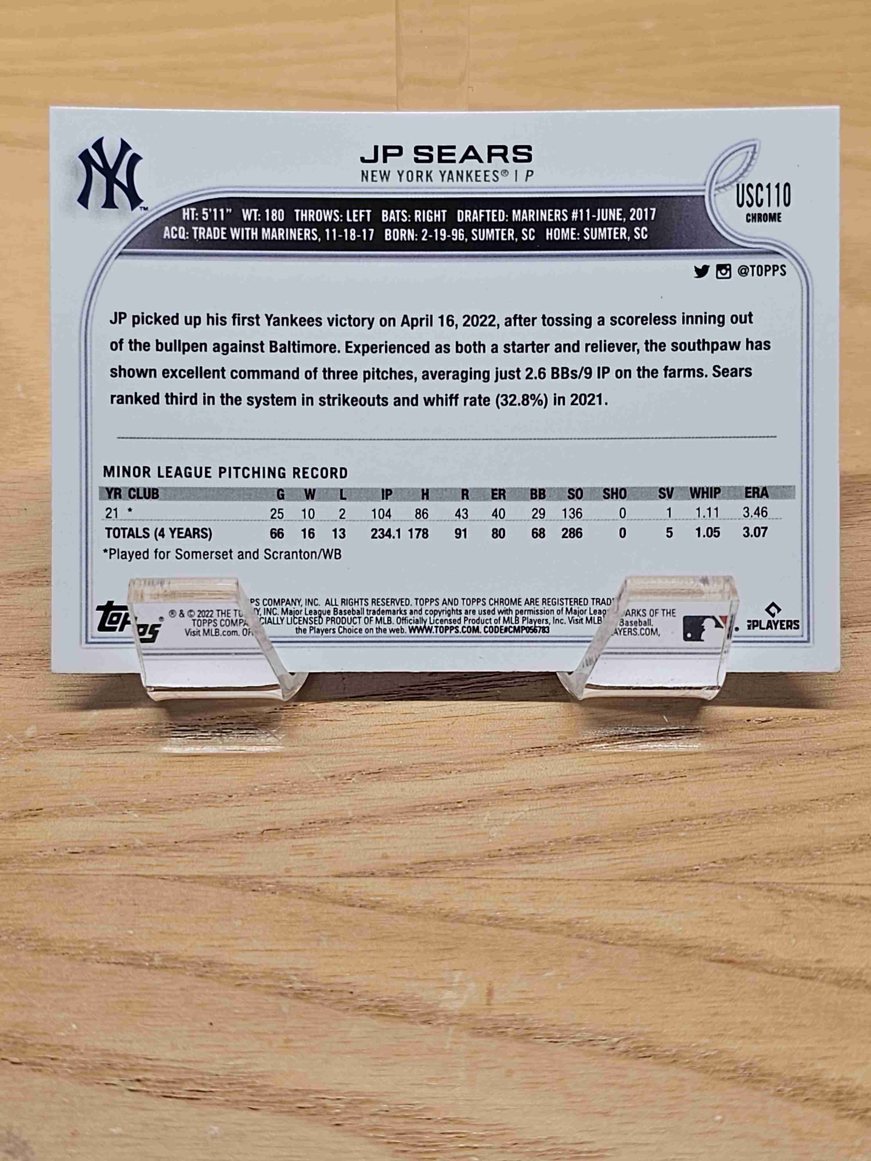 2022 Chrome Update Rookie RC JP Sears Yankees #USC110