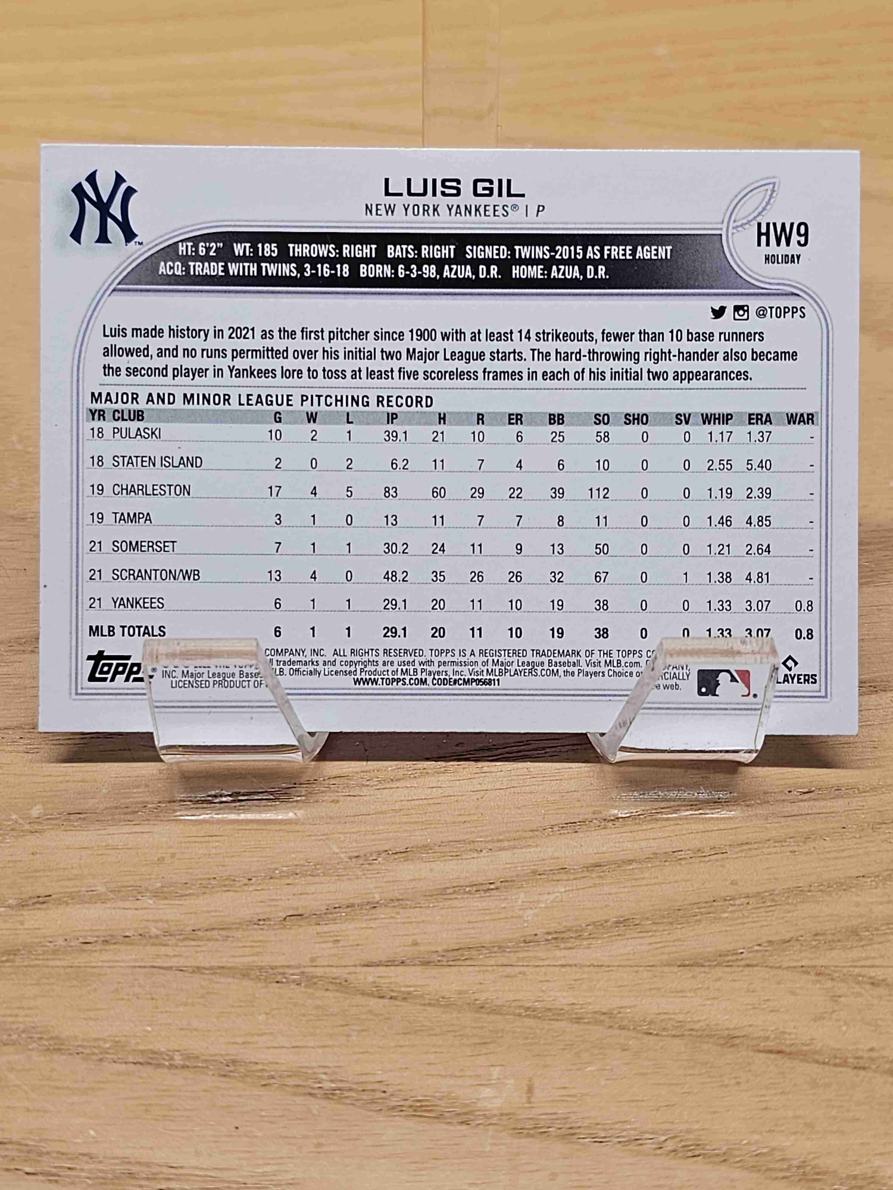 2022 Topps Holiday Metallic Snowflake RC Luis Gil Yankees #