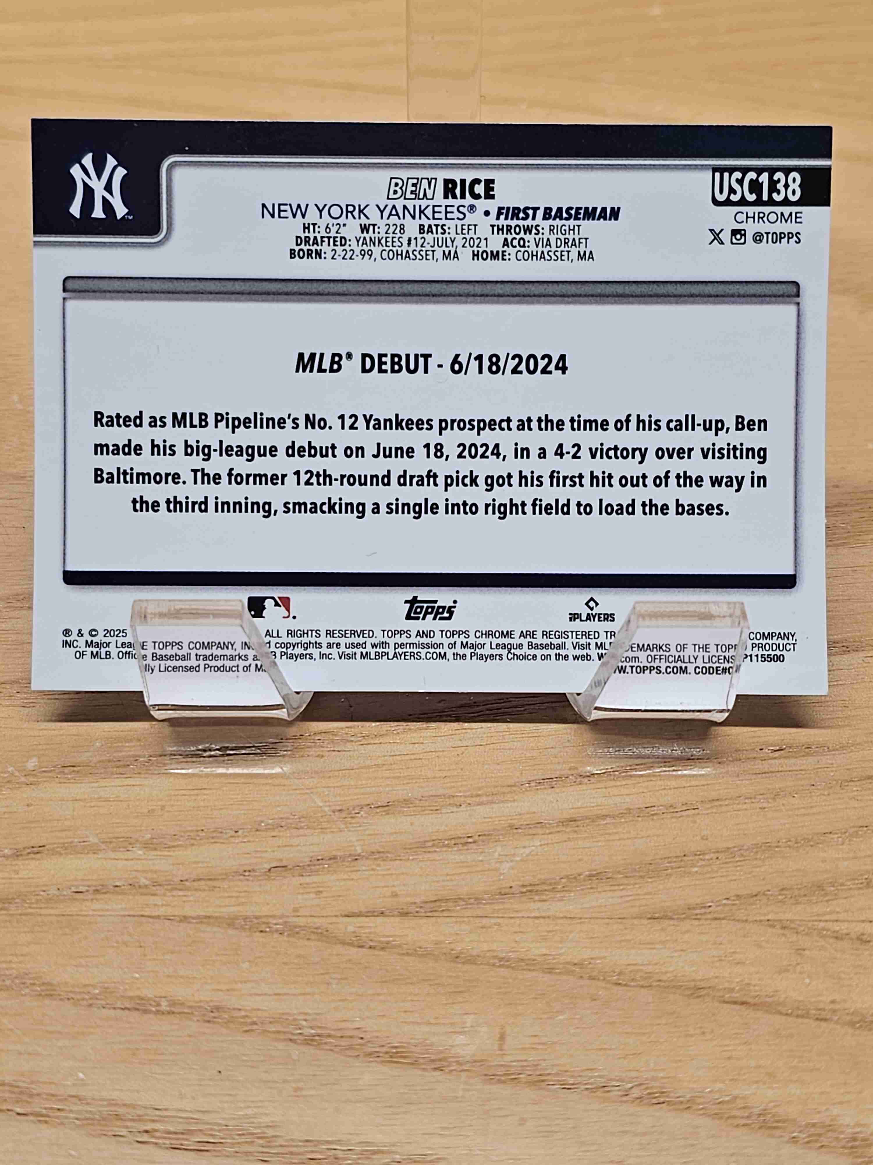 2025 Topps Chrome Update Baseball Rookie Debut Ben Rice New York Yankees Card #USC138