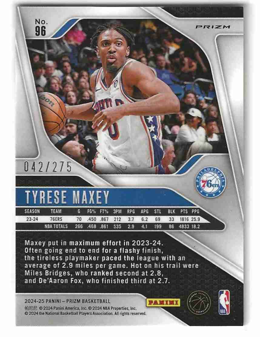 2024-25 Panini Prizm Tyrese Maxey White Lazer 42/275