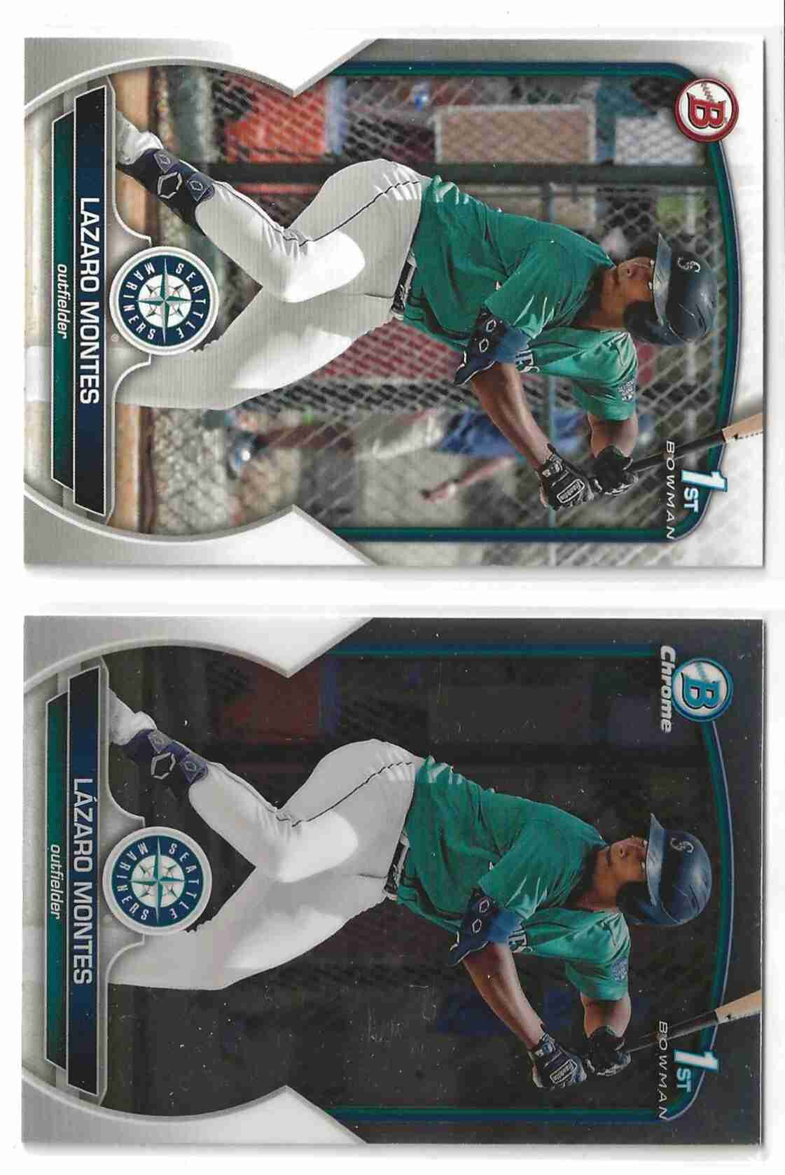 Great looking cards of the young Mariners outfielder. You will receive the regular Bowman Prospect and the Bowman Chrome Prospect cards, 1st cards of the future MLB star. Cards are in mint condition. Thanks for looking.