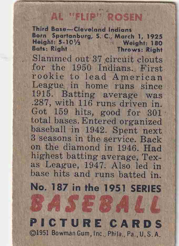 1951 Bowman # 187 Al "Flip" Rosen Indians