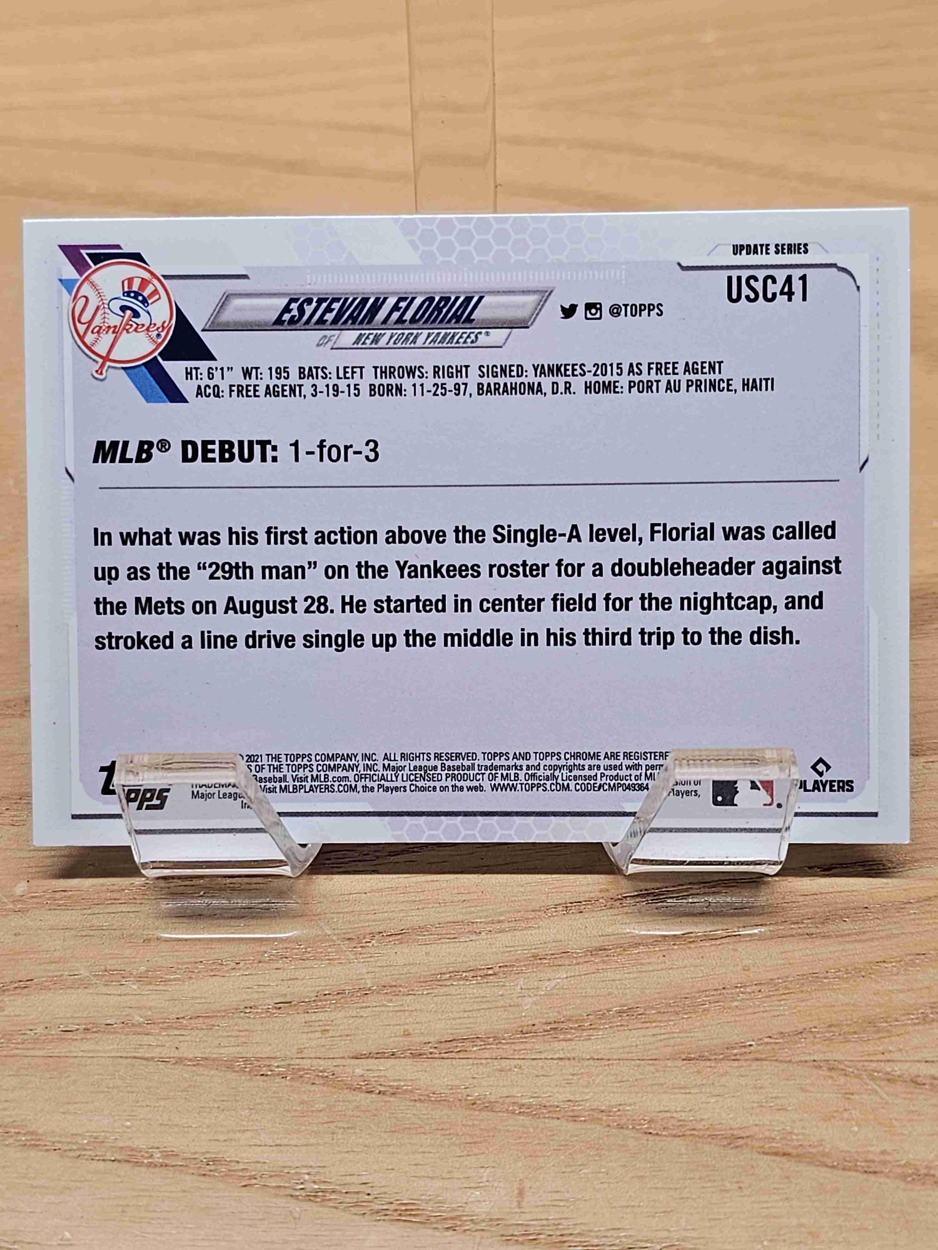 2021 Chrome Update Rookie Debut RC Estevan Florial Yankees