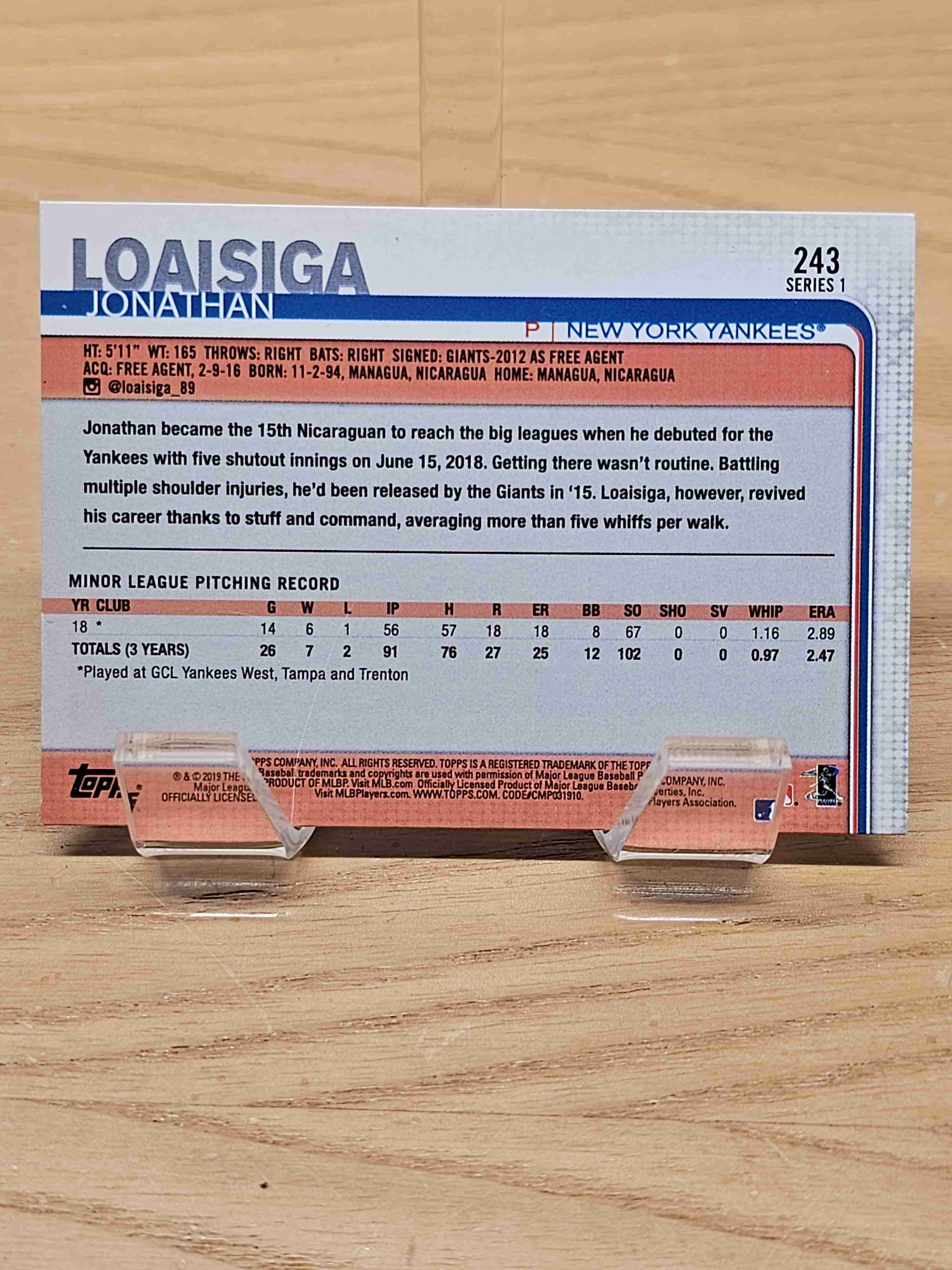 2019 Topps Series 1 Baseball Rookie RC Jonathan Loaisiga New York Yankees Card #243