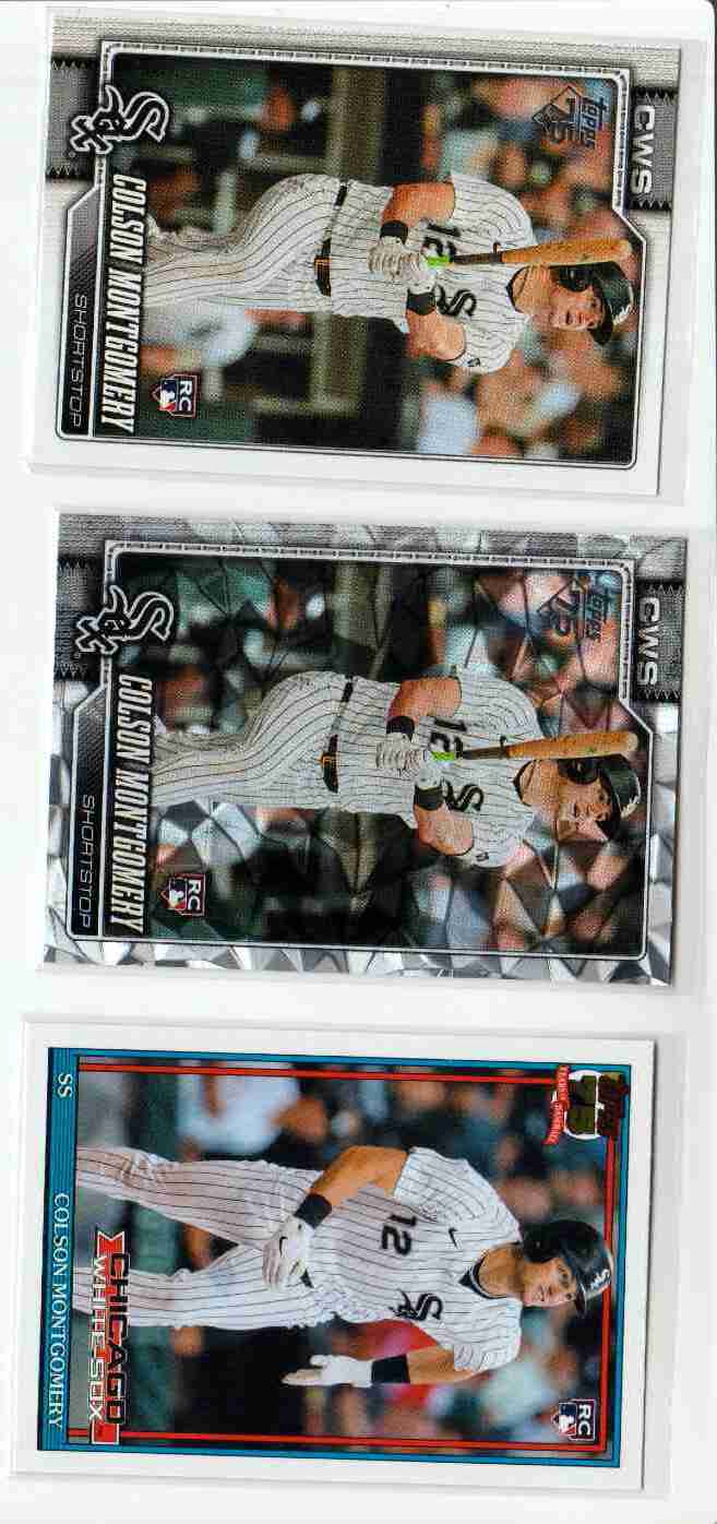 Please take a look at the photos for details on the cards' condition. The cards you are bidding on are the cards pictured. This auction is for 3 2026 Topps Series 1 Colson Montgomery RCs. They are base #157, Diamonte Parallel, and 1991 Topps 35th Anniversary. You can use your judgment on the grade of the cards. If you have any questions or require more detailed photos, please don't hesitate to ask. Note: The shipping price shown is for PWE. The card will ship with a tracking number if the final auction price exceeds a certain dollar amount (or if it is combined with the appropriate number of other completed auctions). Otherwise, the card will be shipped PWE. Thank you!