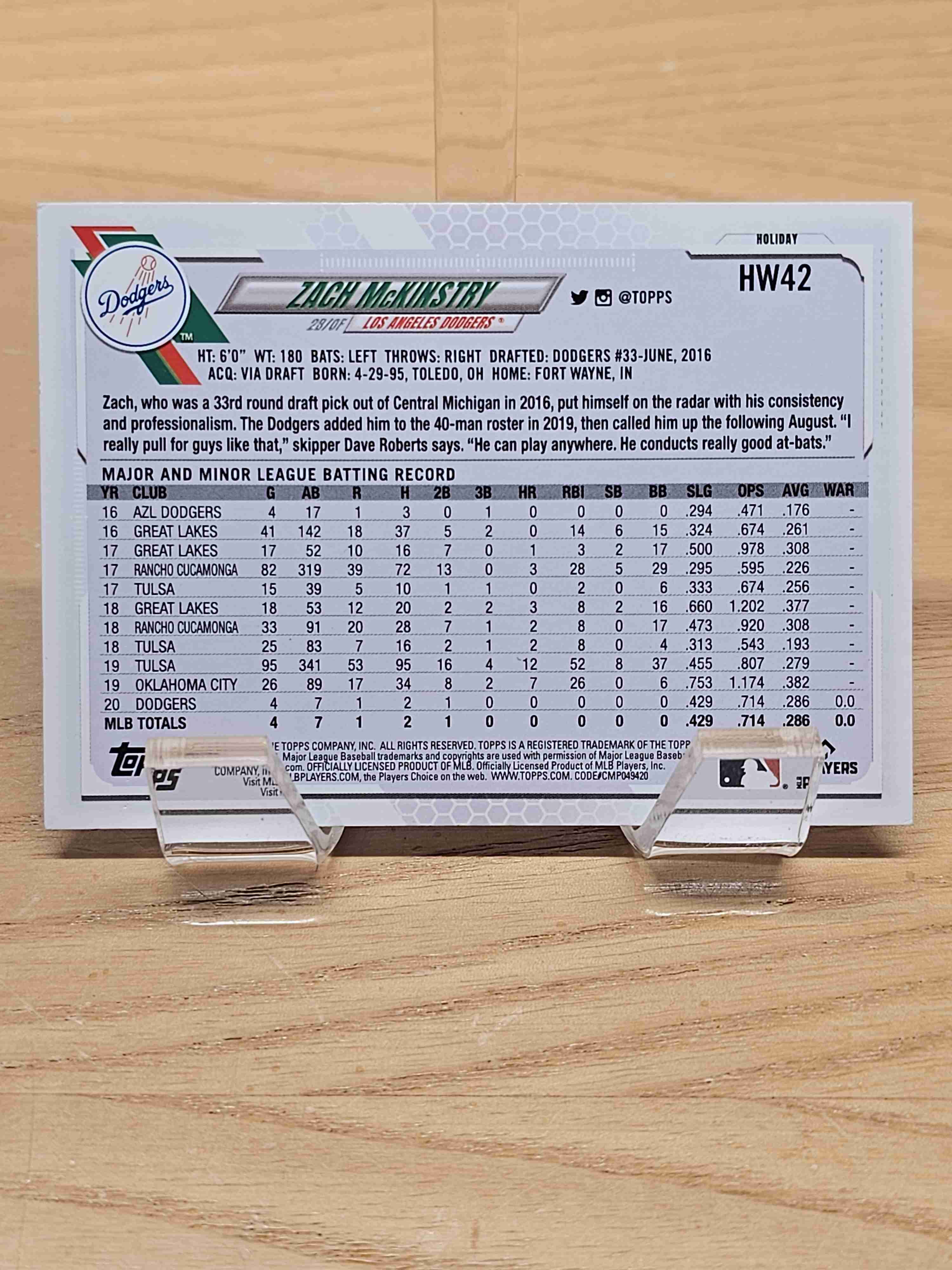 2021 Topps Holiday Rookie RC Zach McKinstry Dodgers #HW42