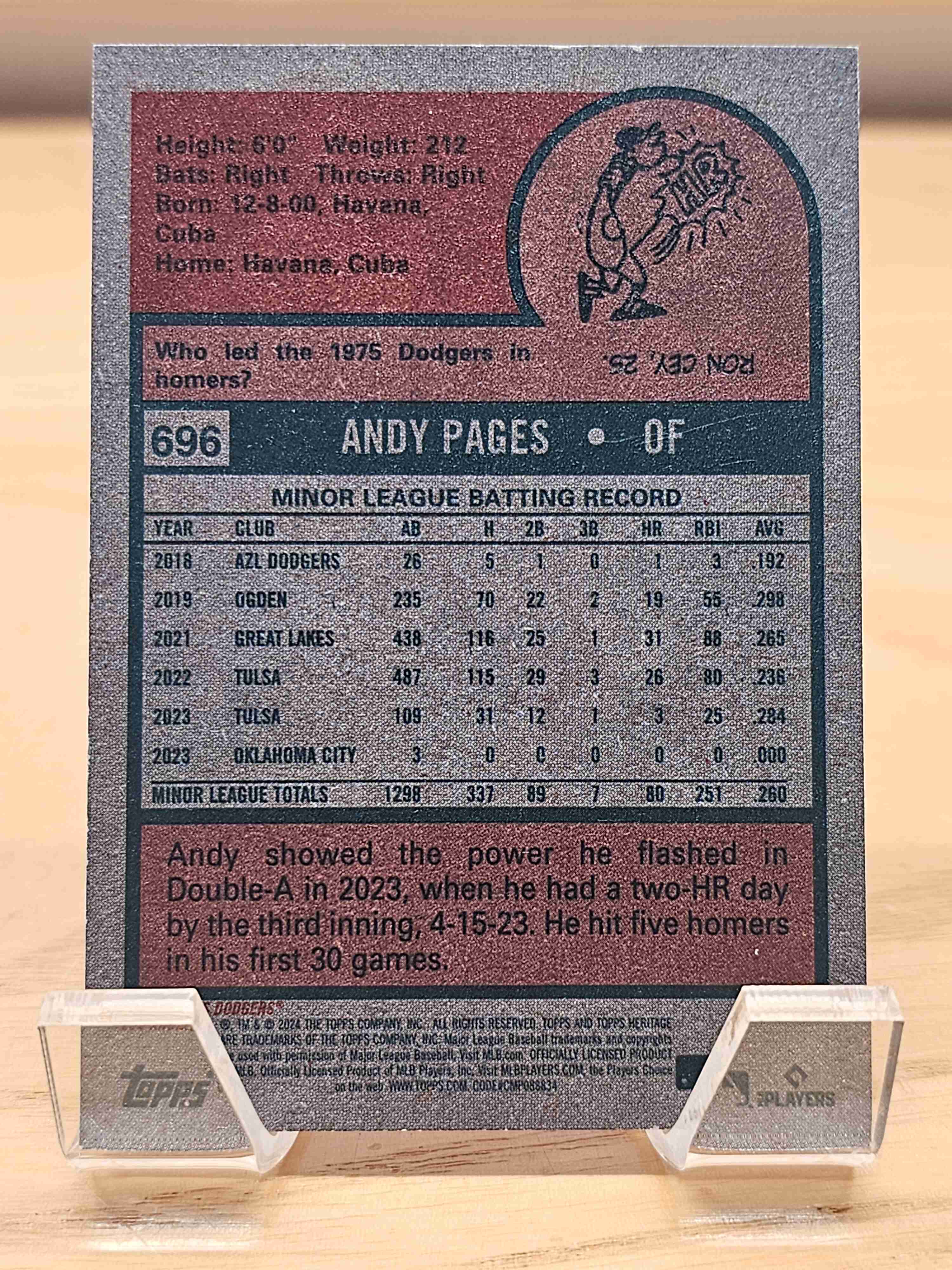 2024 Topps Heritage High Number Baseball Rookie RC Andy Pages Los Angeles Dodgers Card #696