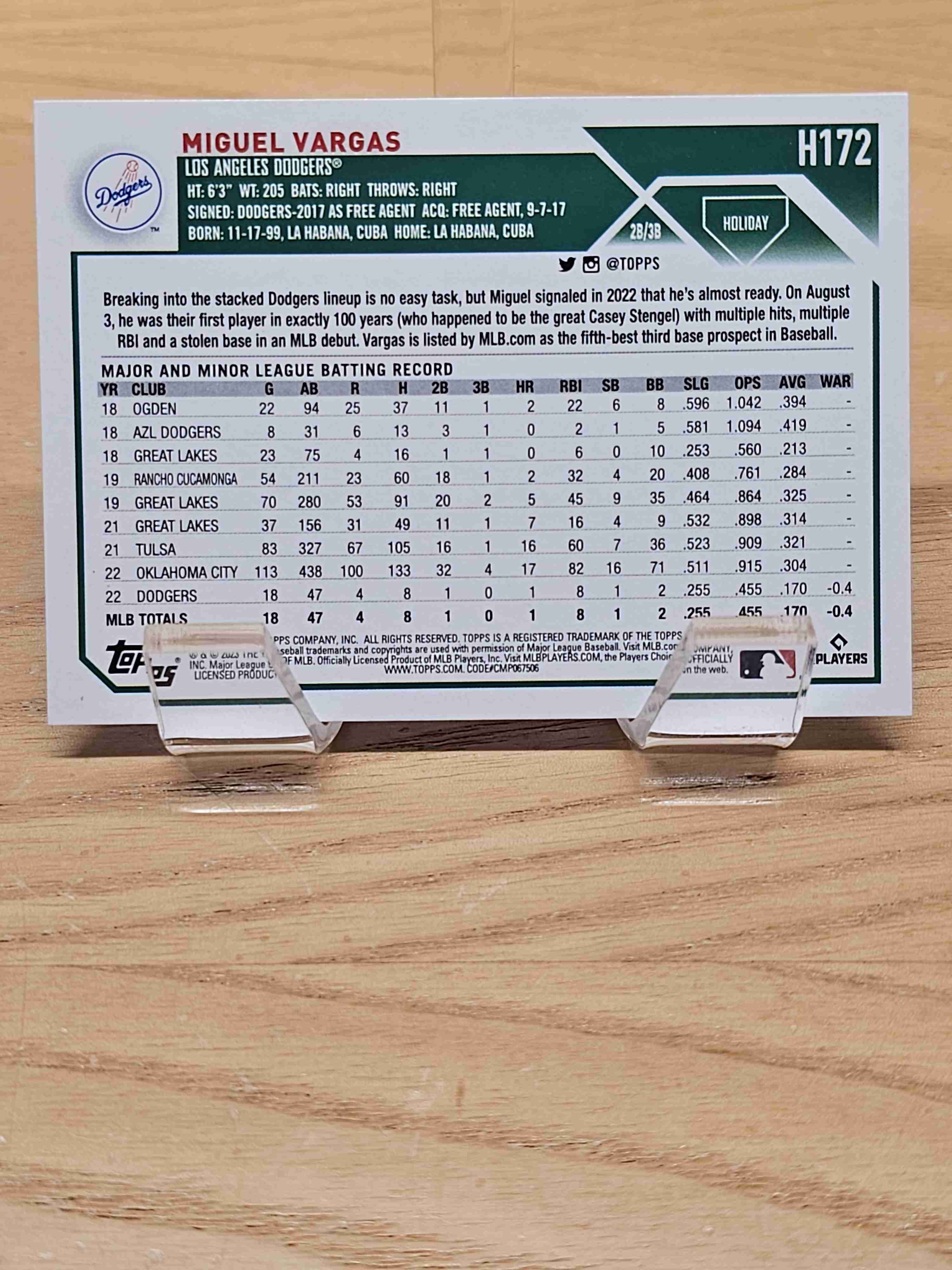 2023 Topps Holiday Baseball Rookie RC Miguel Vargas Los Angeles Dodgers Card #H172