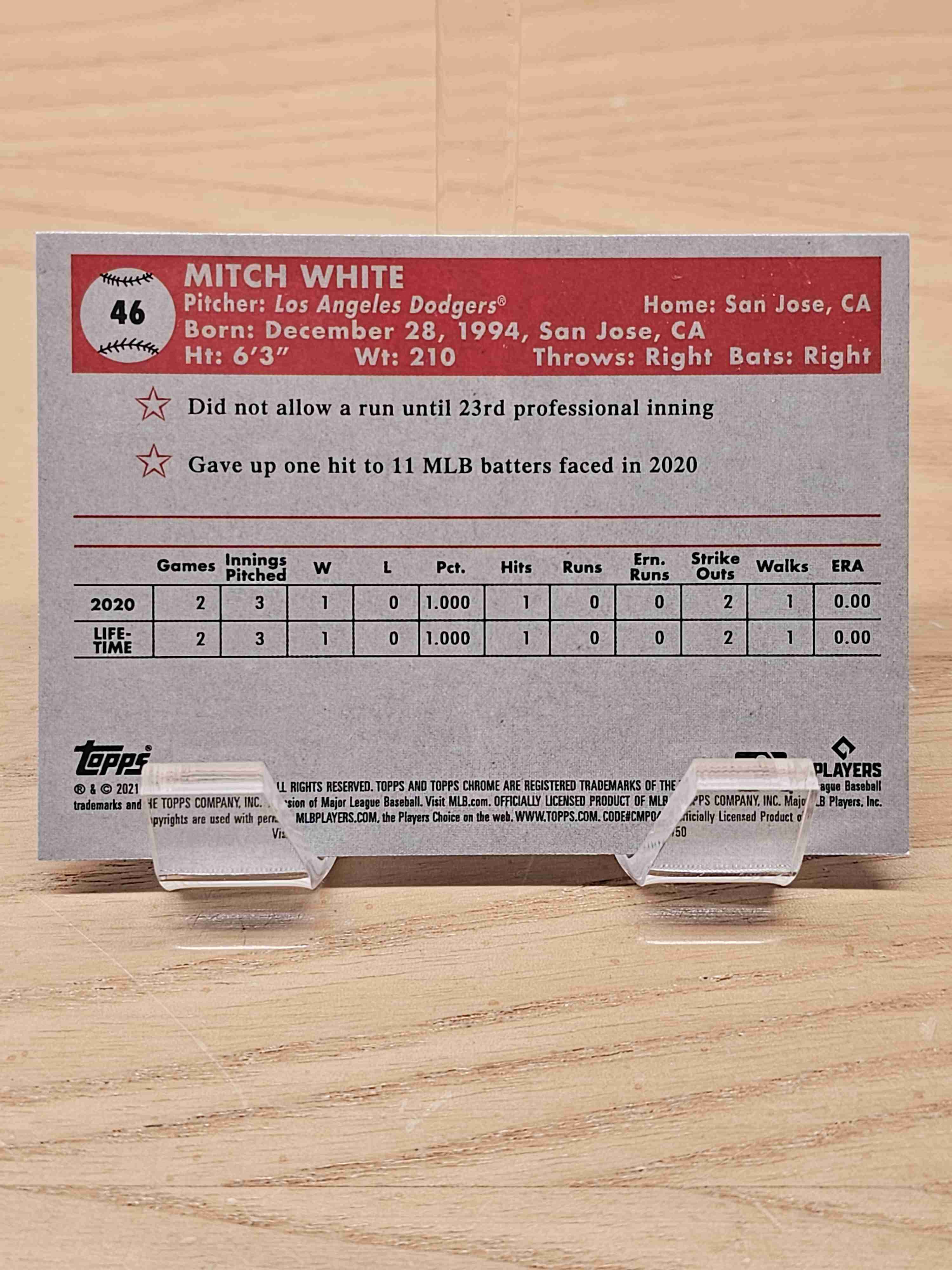 2021 Topps Chrome Platinum Anniversary Baseball Rookie RC Mitch White Los Angeles Dodgers Card #46