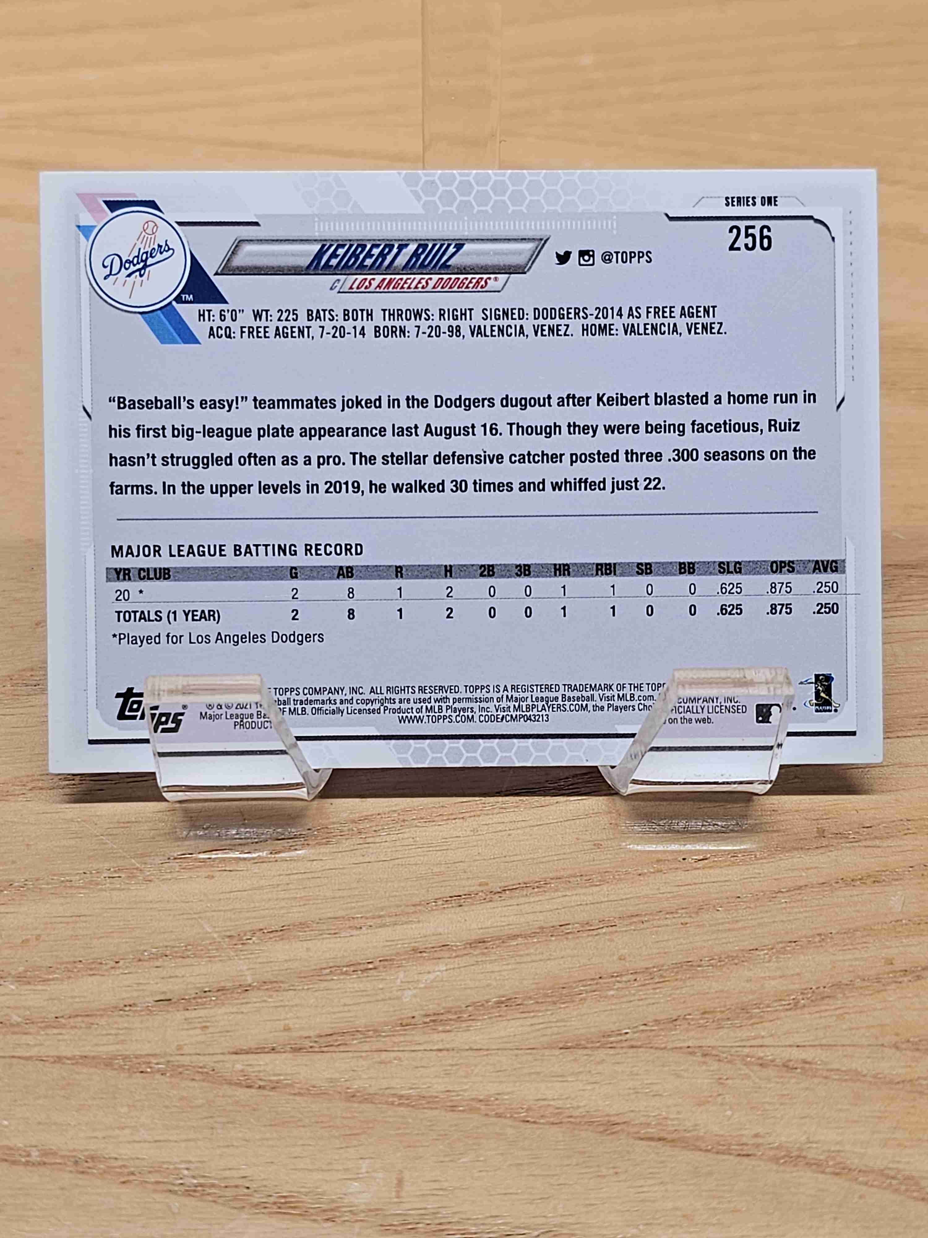 2021 Topps Series One Baseball Rookie RC Keibert Ruiz Los Angeles Dodgers Card #256