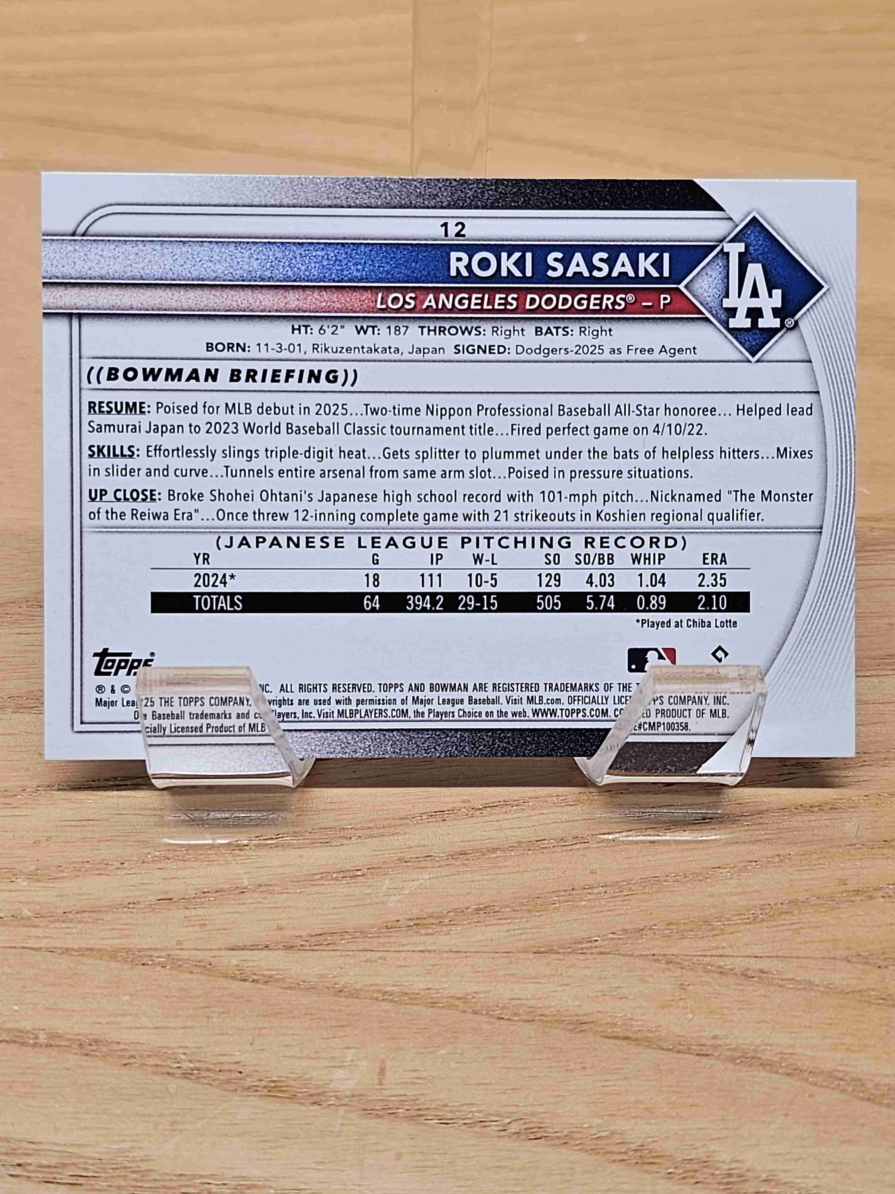 2025 Bowman Baseball Rookie RC Roki Sasaki Los Angeles Dodgers Card #12