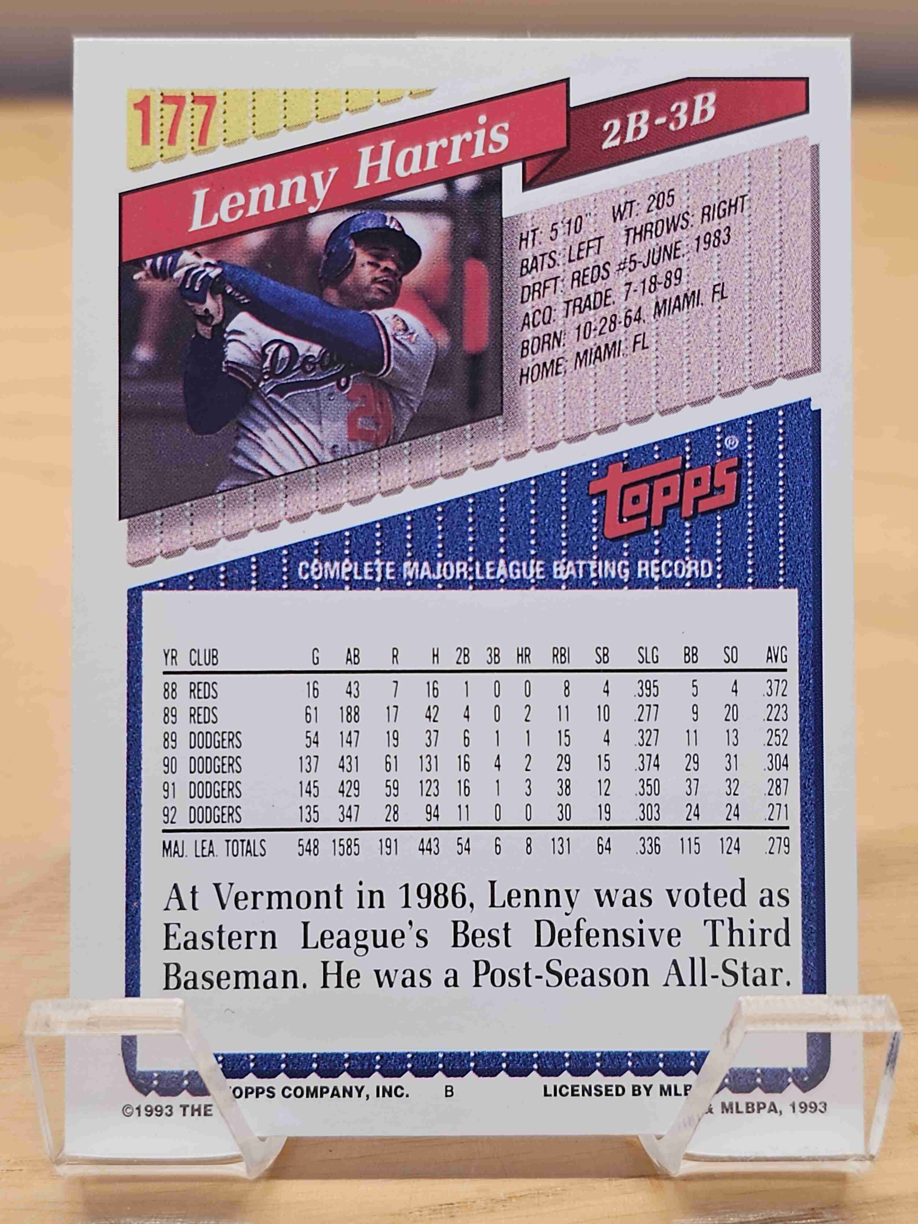 1993 Topps Baseball Topps Gold Lenny Harris Los Angeles Dodgers Card #177