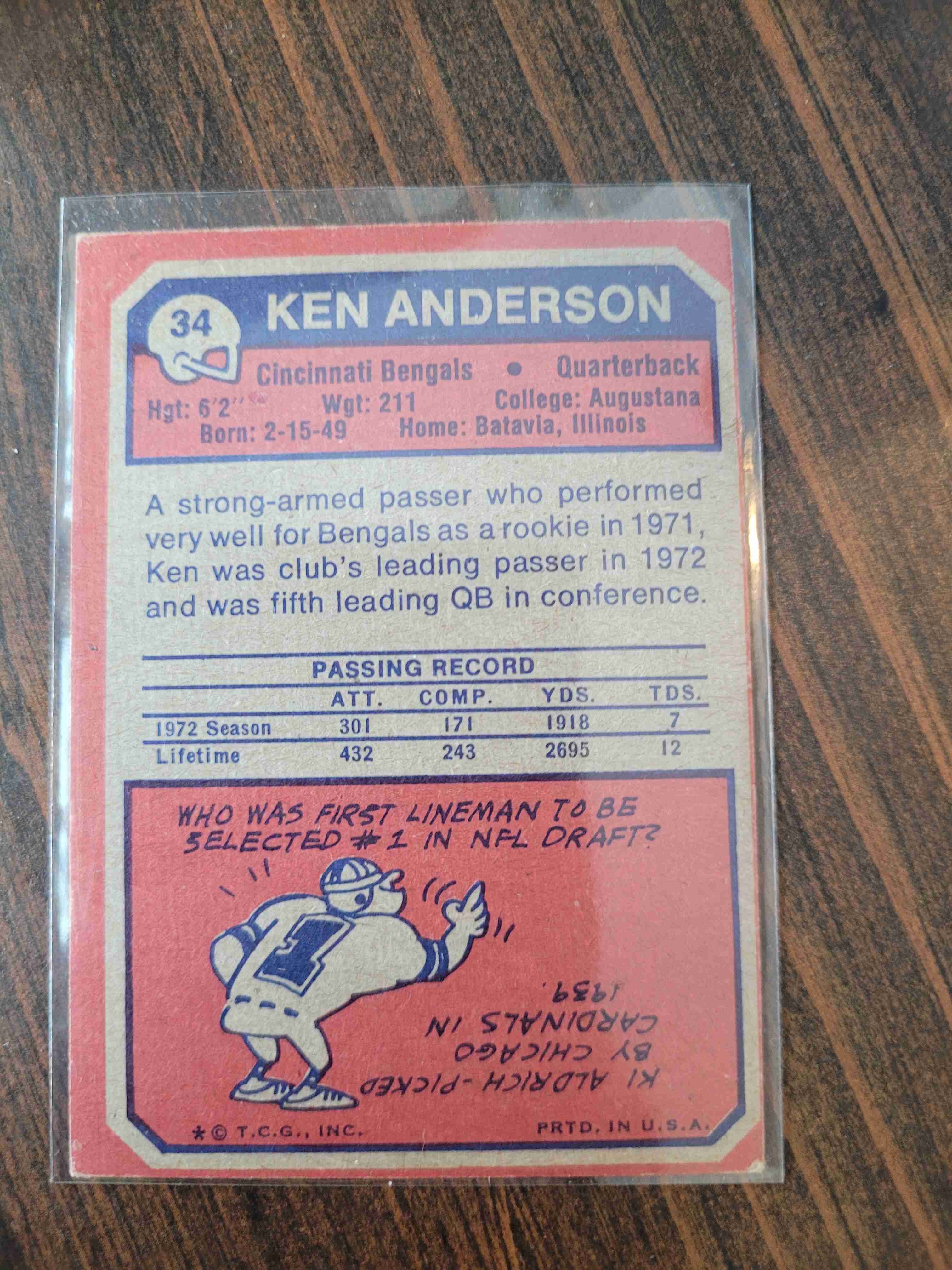 1973 TOPPS KEN ANDERSON #34 ROOKIE