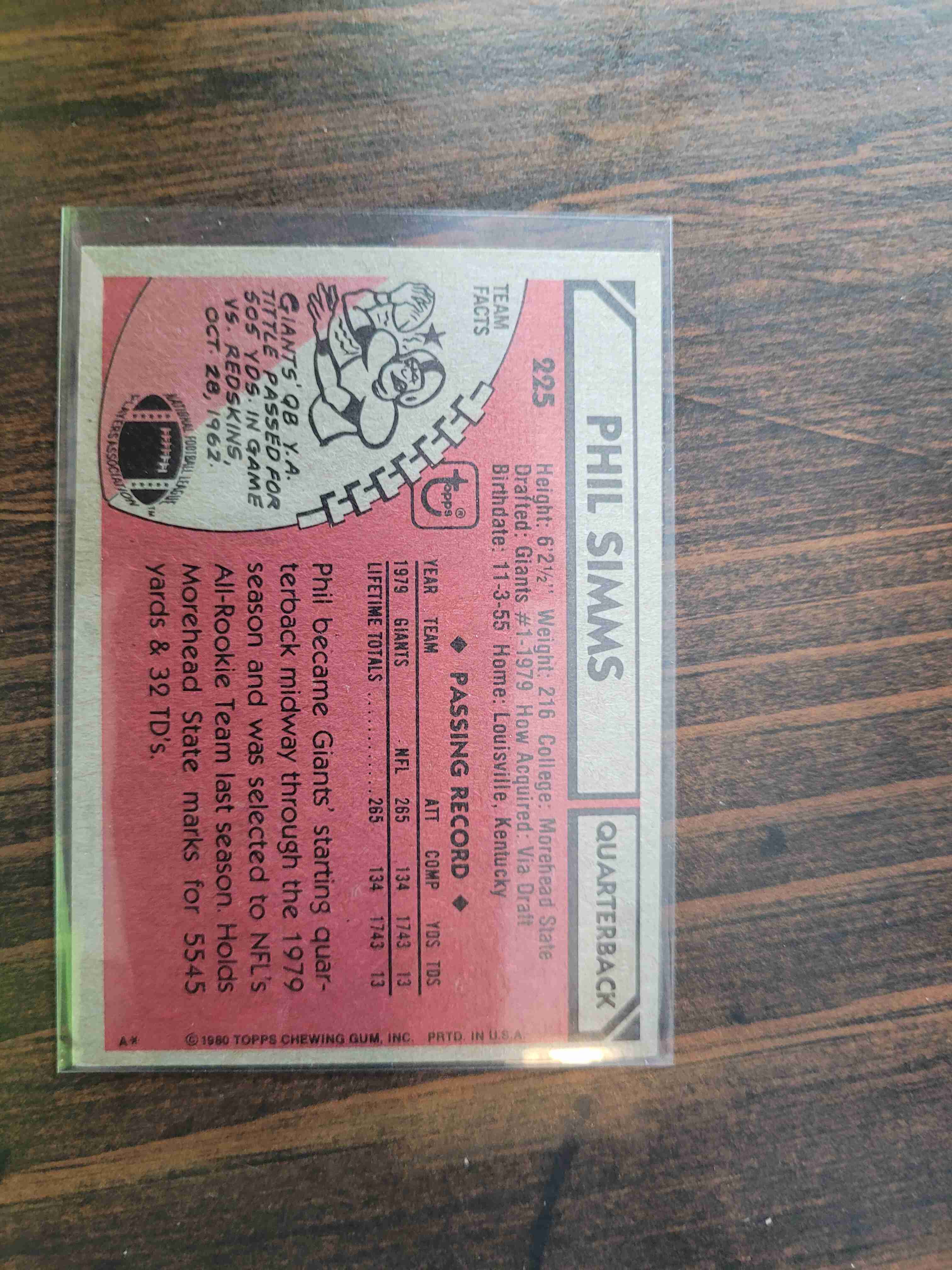 1980 TOPPS PHIL SIMMS #225 ROOKIE