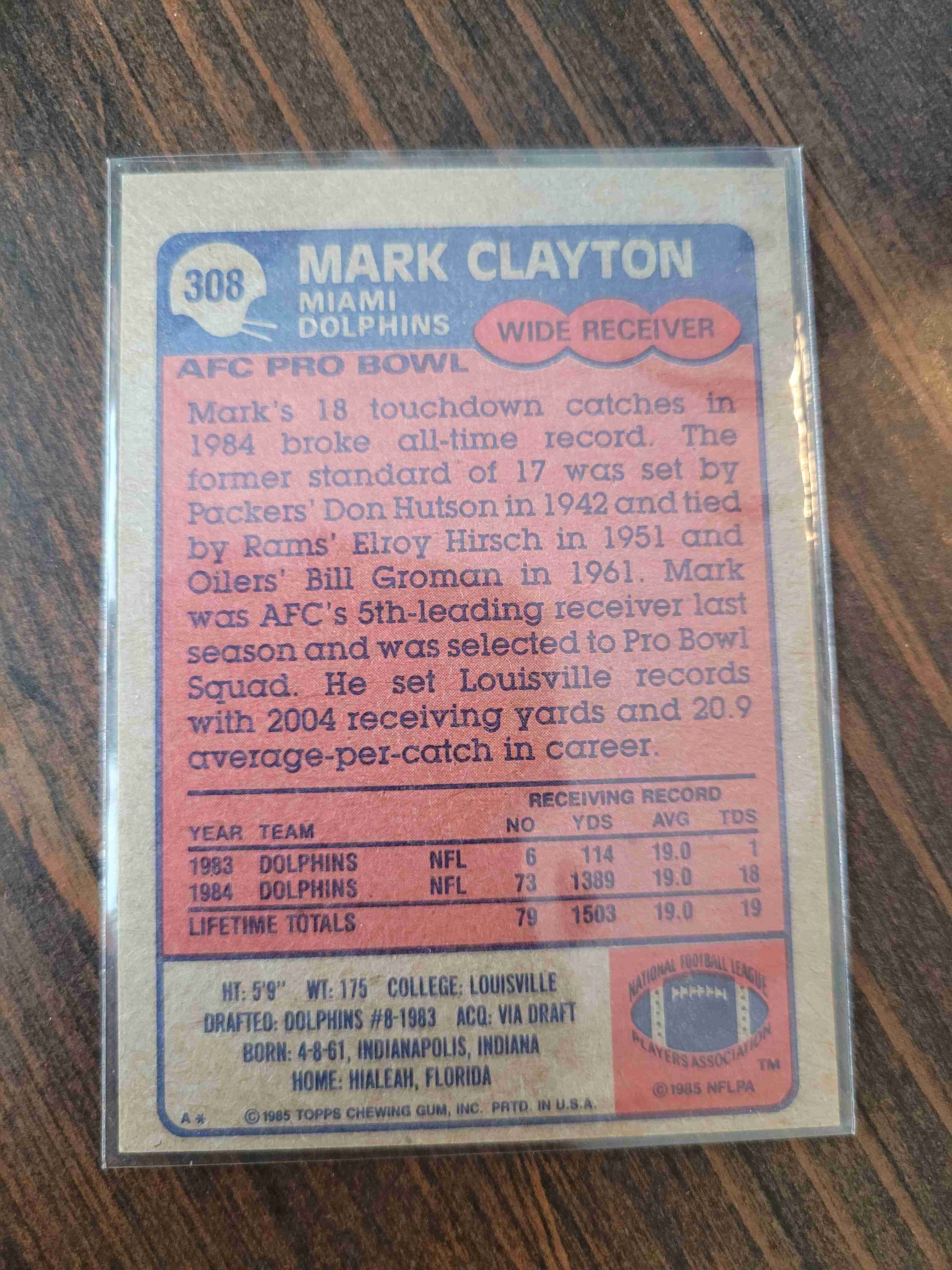 1985 TOPPS MARK CLAYTON #308 ROOKIE