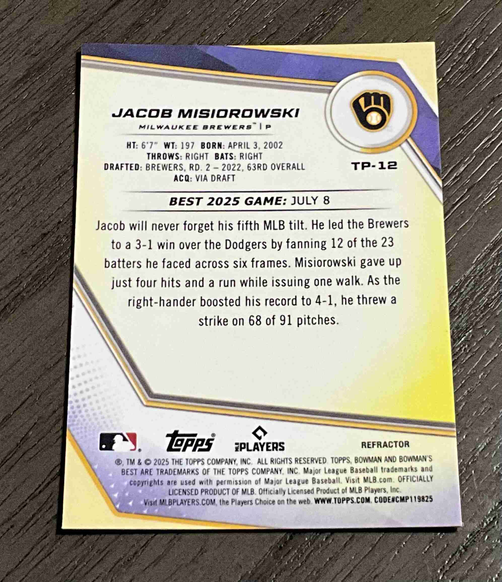 Jacob Misiorowski Refractor Top Prospect 2025 Bowman’s Best