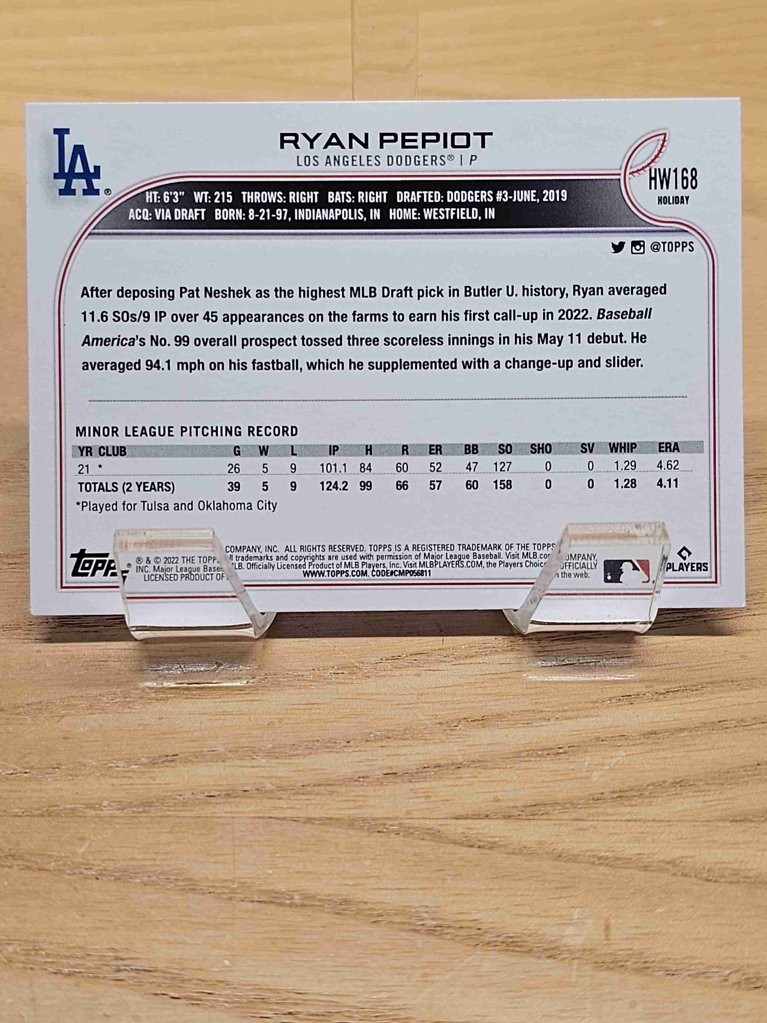 2022 Topps Holiday Rookie RC Ryan Pepiot Dodgers #HW168