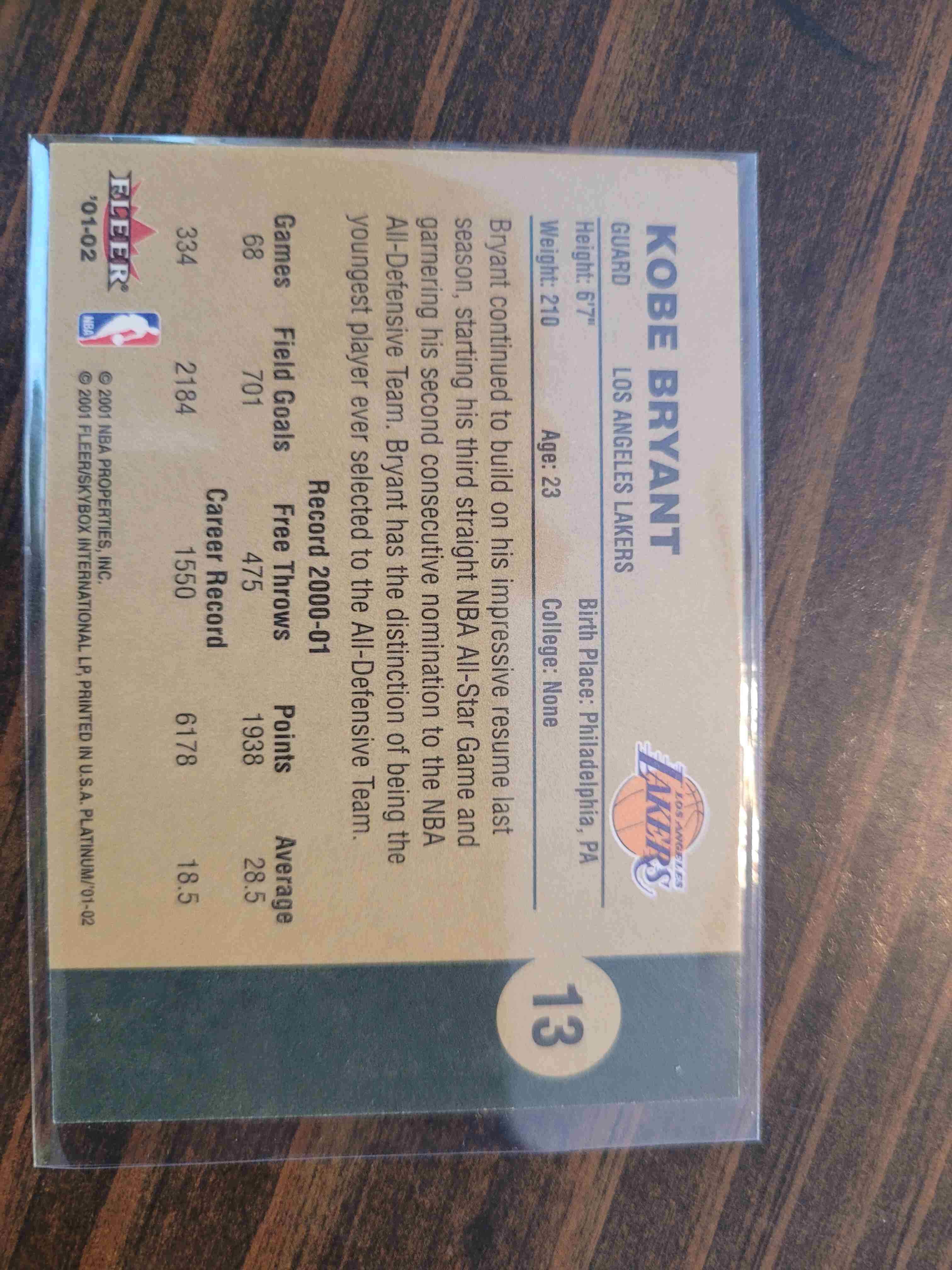 2001-02 FLEER PLATINUM KOBE BRYANT #13