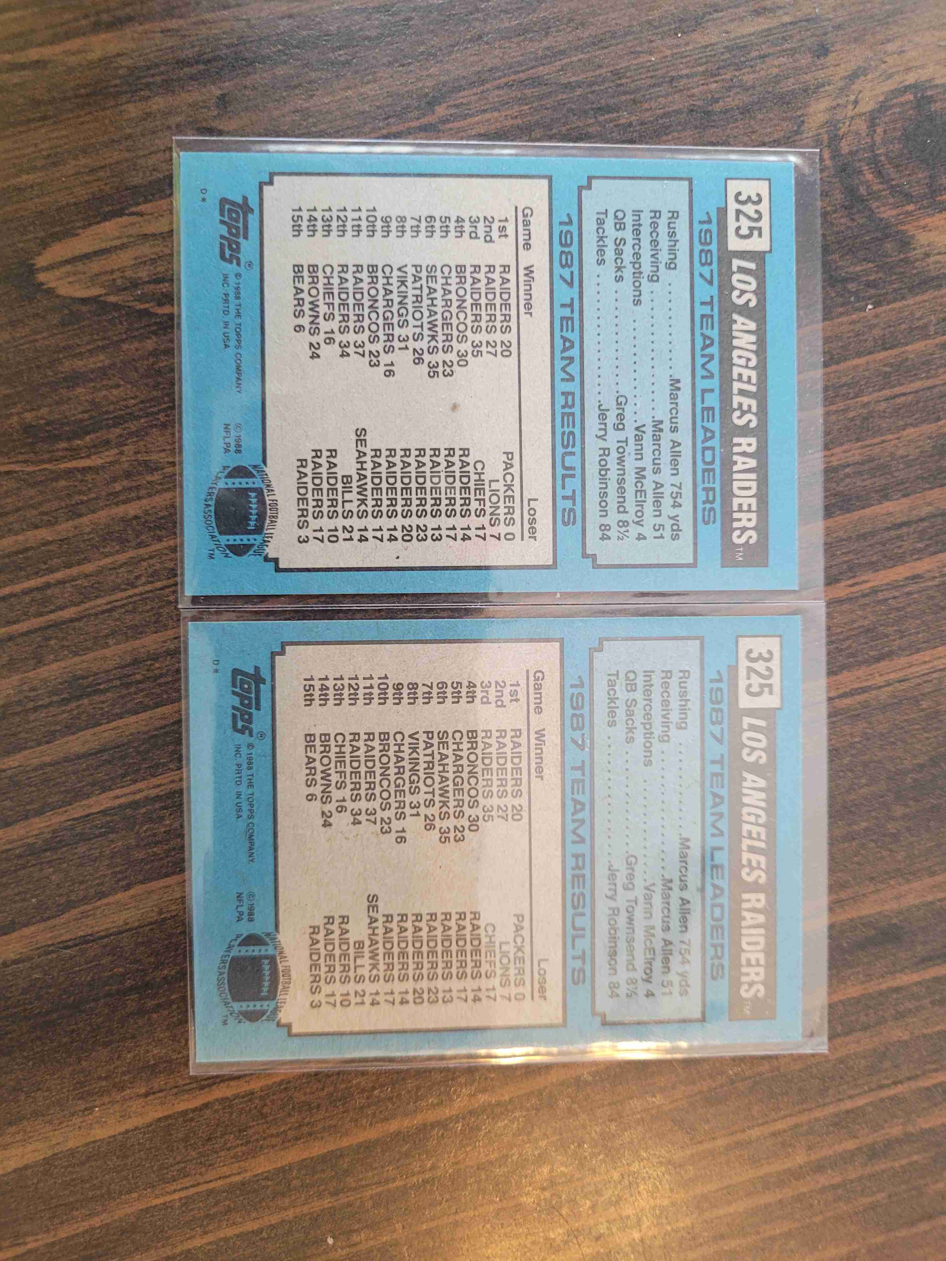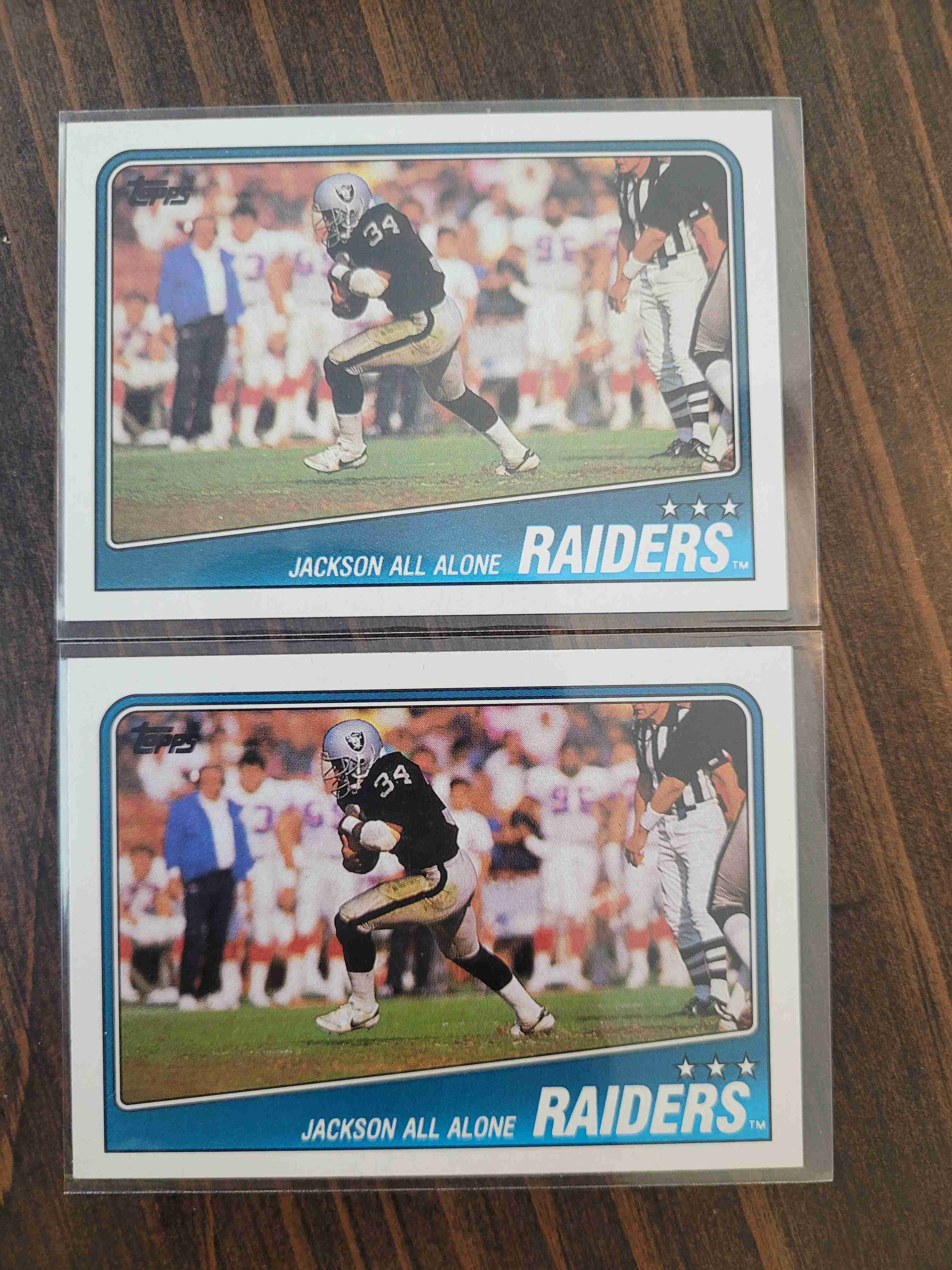 (2) 1988 TOPPS RAIDERS TEAM CARD BO JAX ON FRONT