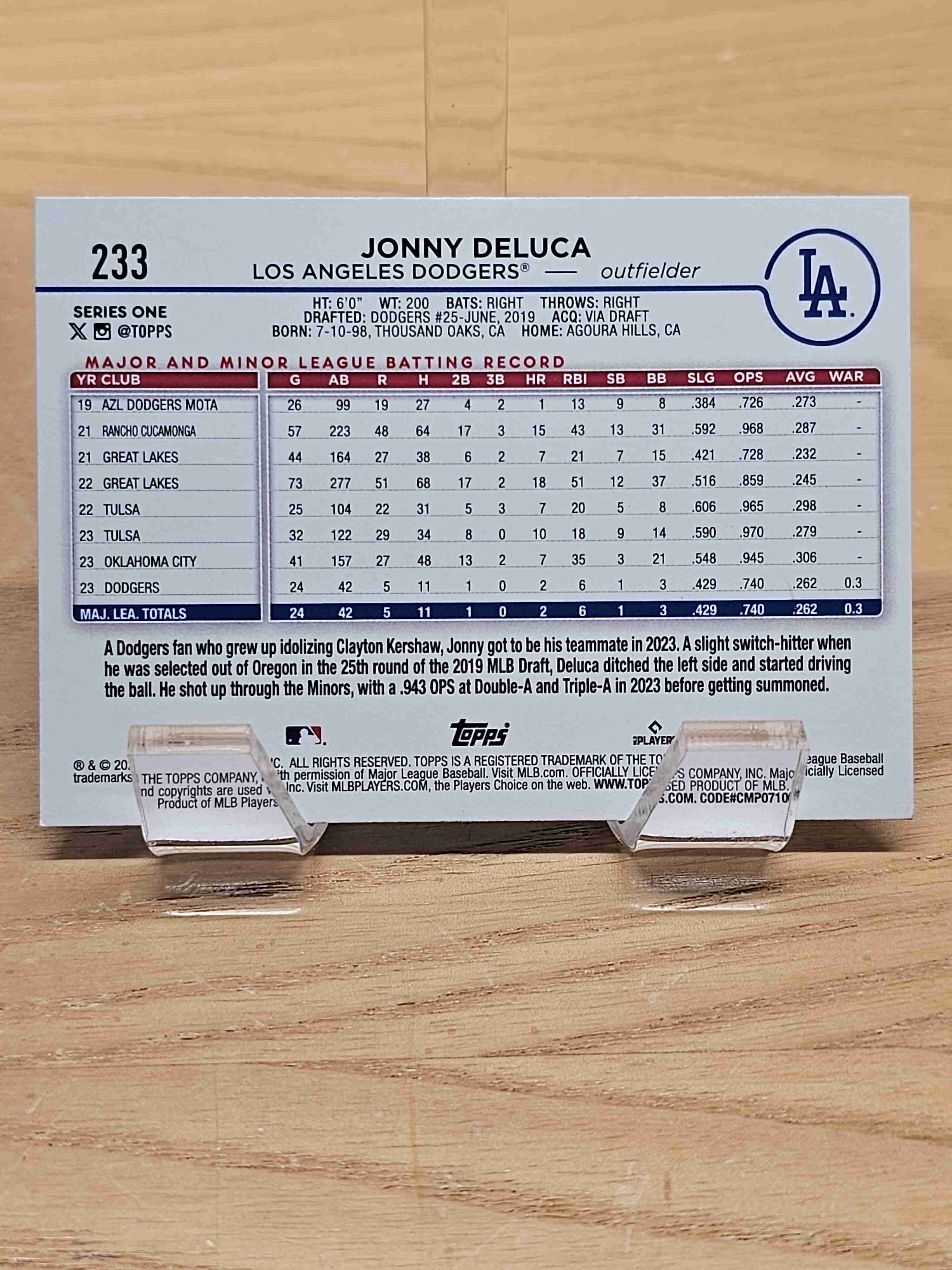 2024 Topps Series One Baseball Rookie RC Jonny Deluca Los Angeles Dodgers Card #233
