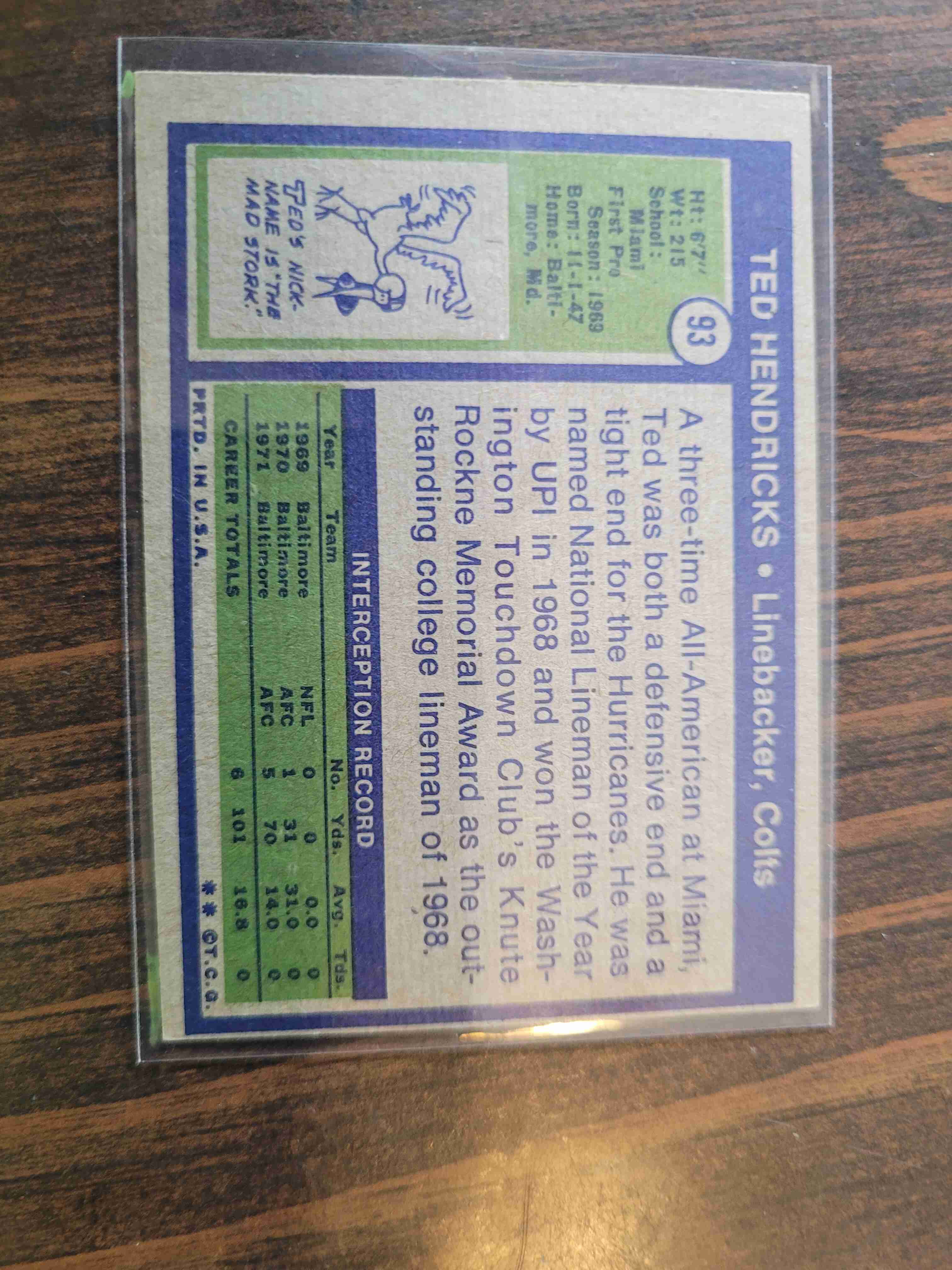 1972 TOPPS TED HENDRICKS #93 ROOKIE