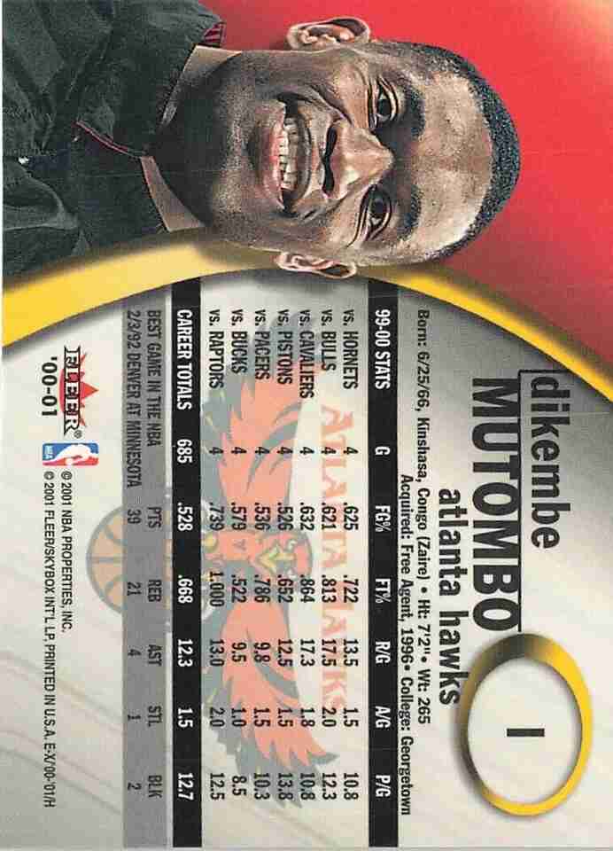 2000-01 E-X Basketball #1 Dikembe Mutombo