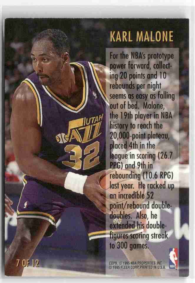1995-96 FLEER #7 KARL MALONE DOUBLE DOUBLE UTAH JAZZ