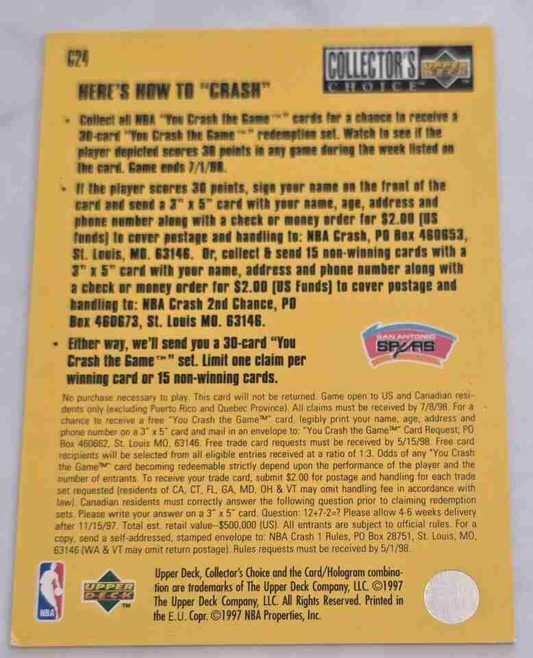 DAVID ROBINSON 96-97 UD Collector's Choice Crash Game 24