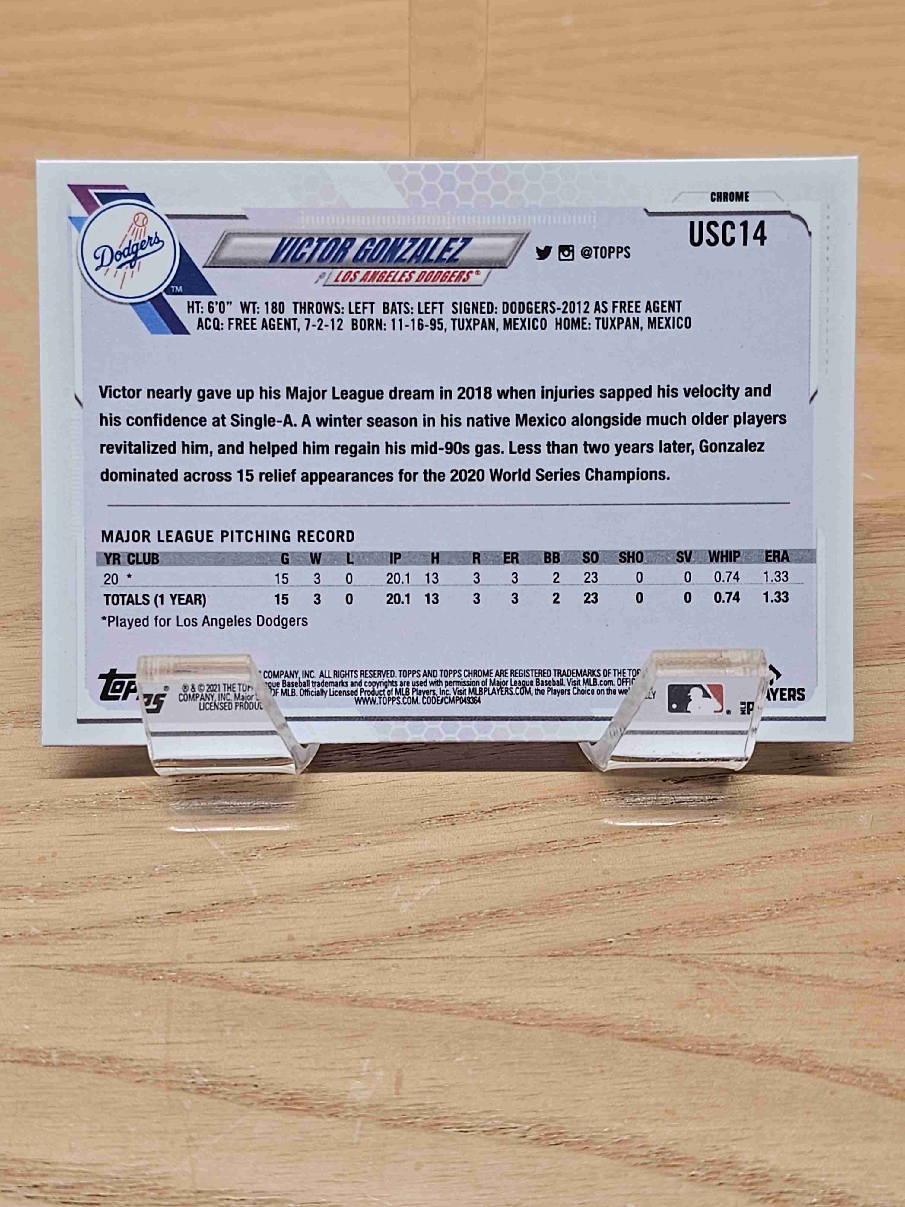 2021 Topps Chrome Update Baseball Rookie RC Victor Gonzalez Los Angeles Dodgers Card #USC14
