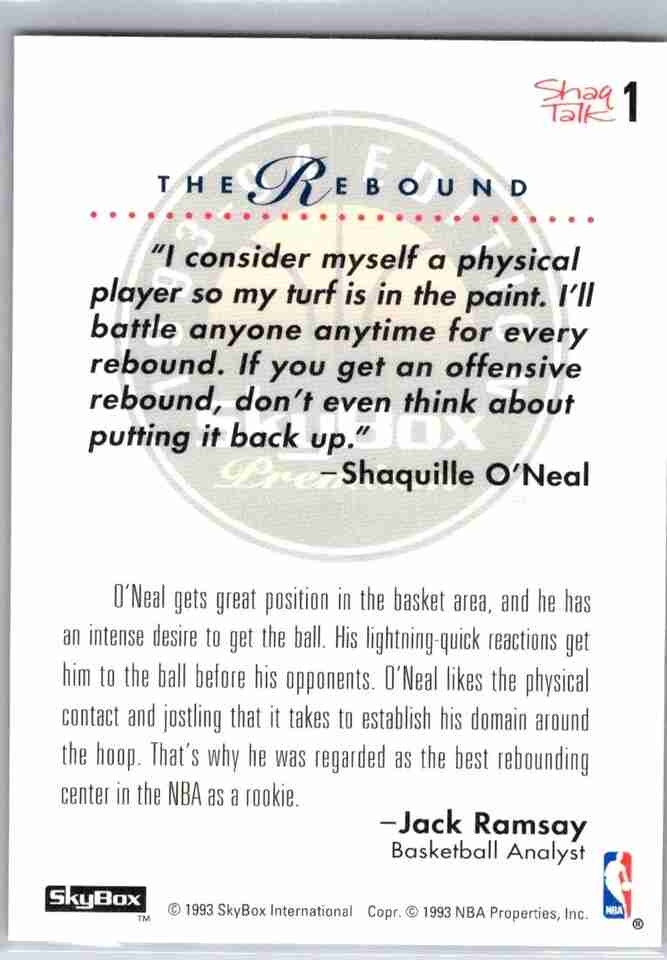 1993-94 SkyBox Premium #1 Shaquille O'Neal Shaq Talk