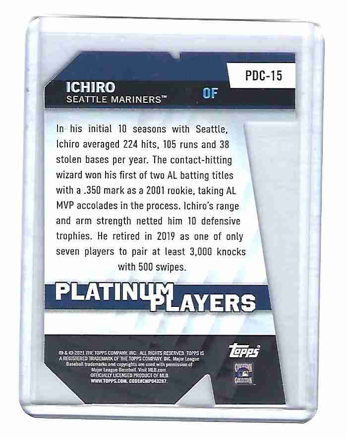 2021 TOPPS PLATINUM PLAYERS DIE CUT ICHIRO BLUE PARALLEL NM