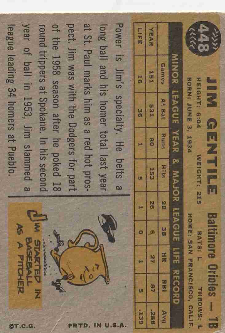 1960 Topps #448 Jim Gentile Orioles