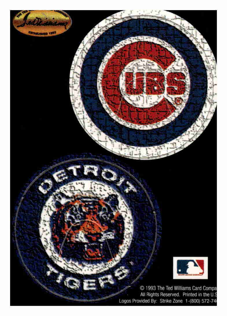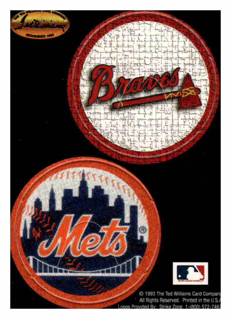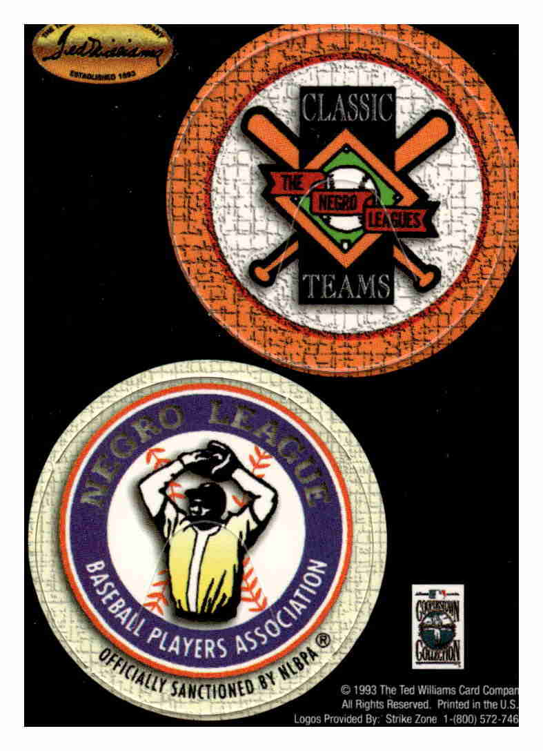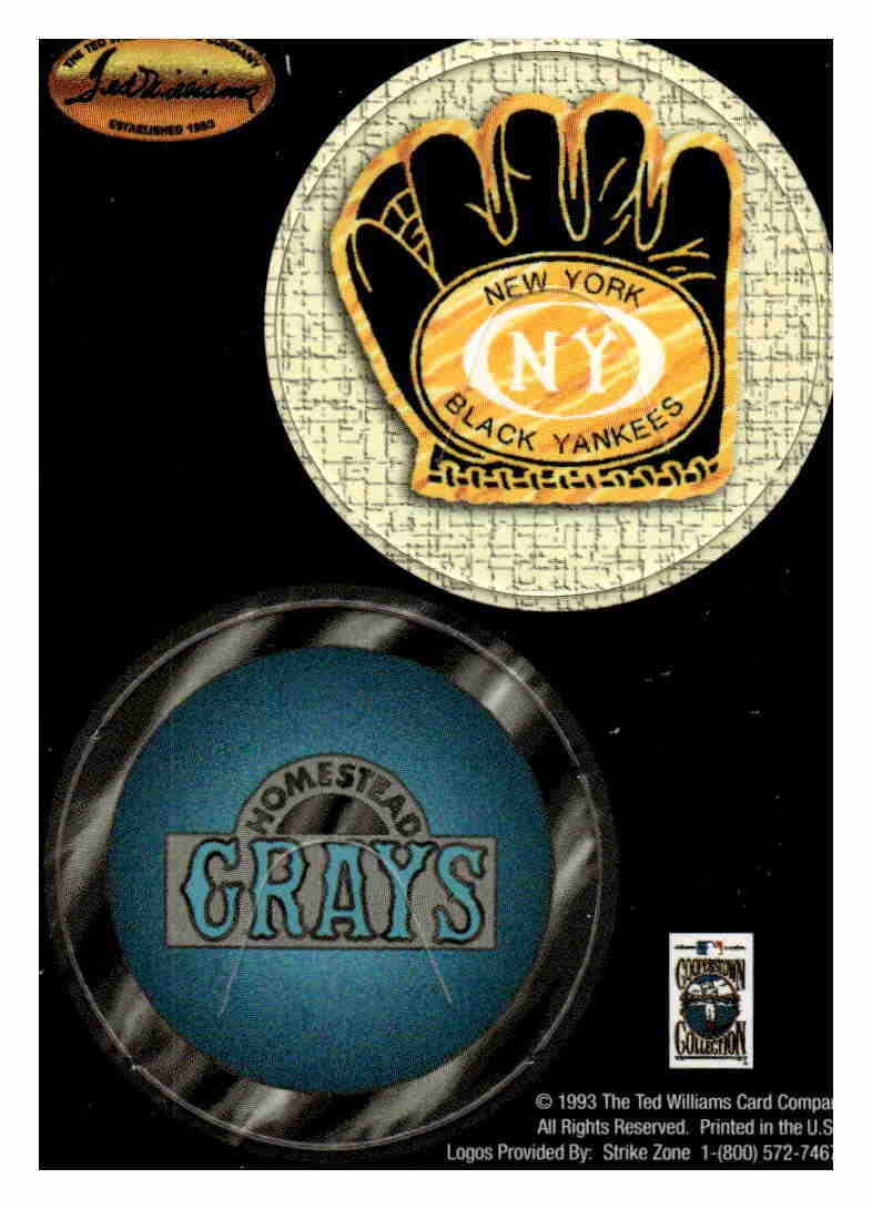 1993 Ted Williams Pog cards. The cards have 2 pogs on each card and auction includes 15 cards. Pogs are The Negro Leagues, Negro League players assoc, New York Black Yankees, Homestead Grays, Brooklyn, Campanella, Gehrig, Williams, 1993 All Star Game, 1993 World Series, Colt 45's, New York, Davis, Foster, Reds, Royals, Cubs, Tigers, Twins, Red Sox, Berra, Campanella, Braves, Mets, 1993 Inaugural Year Marlins Rockies, Indians and Kansas City Athletics.