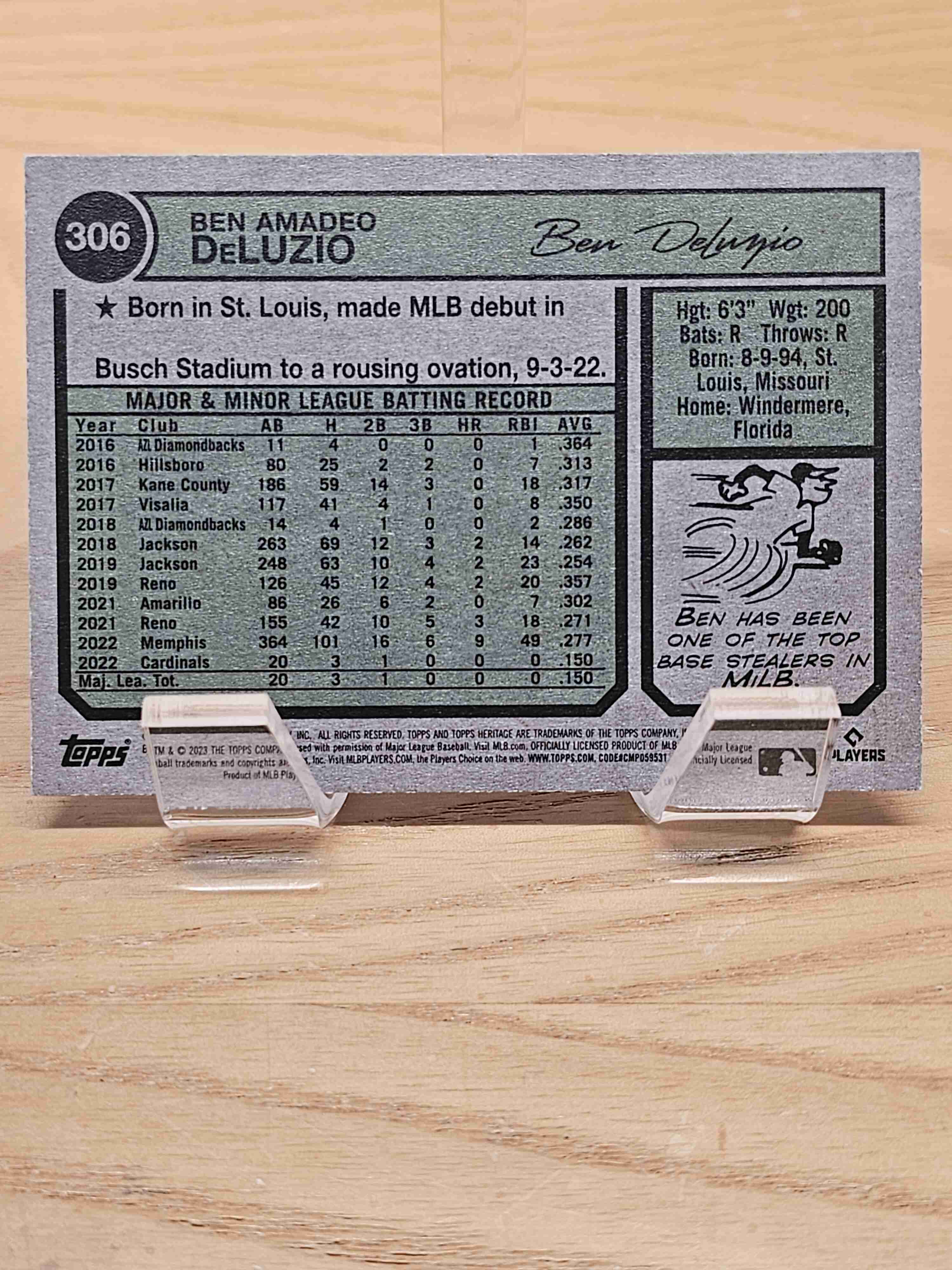 2023 Topps Heritage Baseball Rookie RC Ben DeLuzio Chicago Cubs Card #306