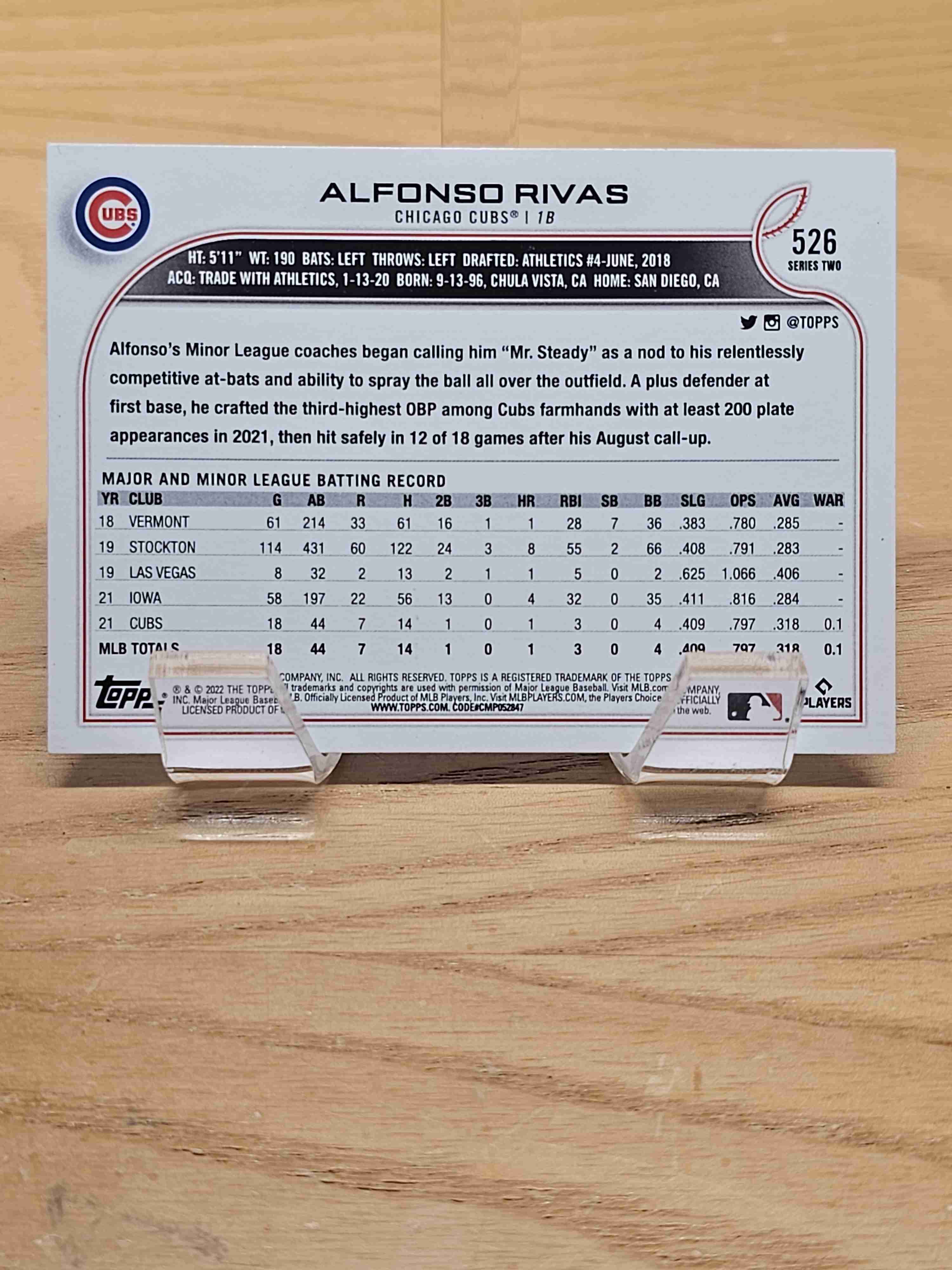 2022 Topps Series Two Baseball Rookie RC Alfonso Rivas Chicago Cubs Card #526