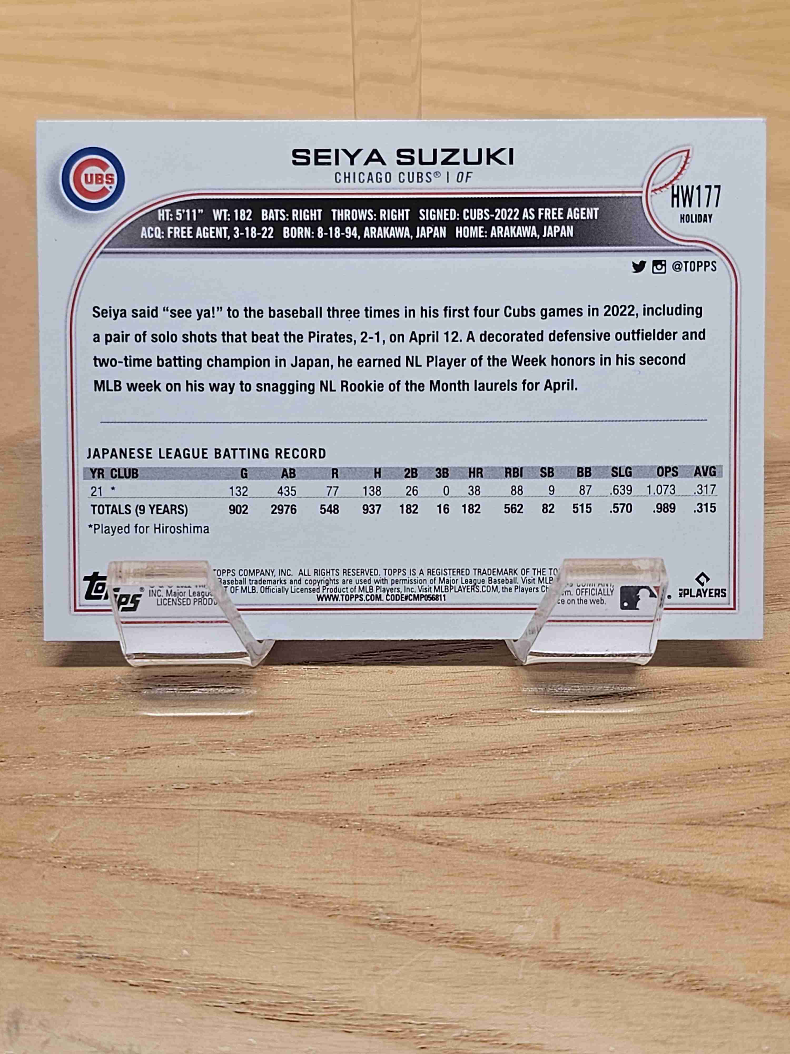 2022 Topps Holiday Rookie RC Seiya Suzuki Cubs #HW177