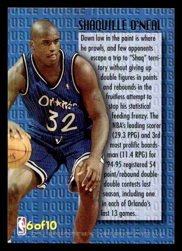 1995-96 Ultra #6 Shaquille O'Neal Orlando Magic Double Trouble