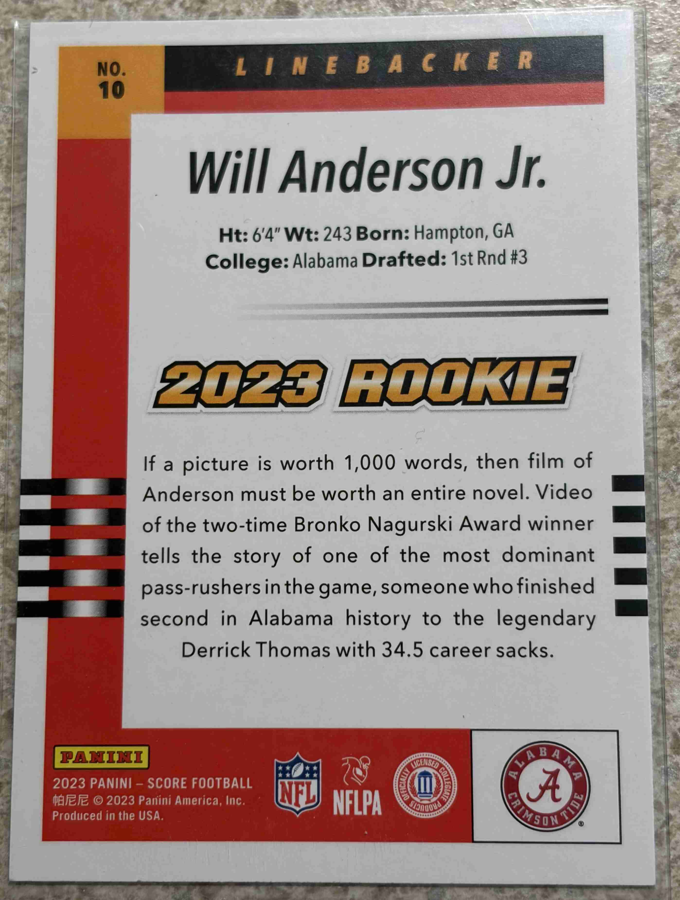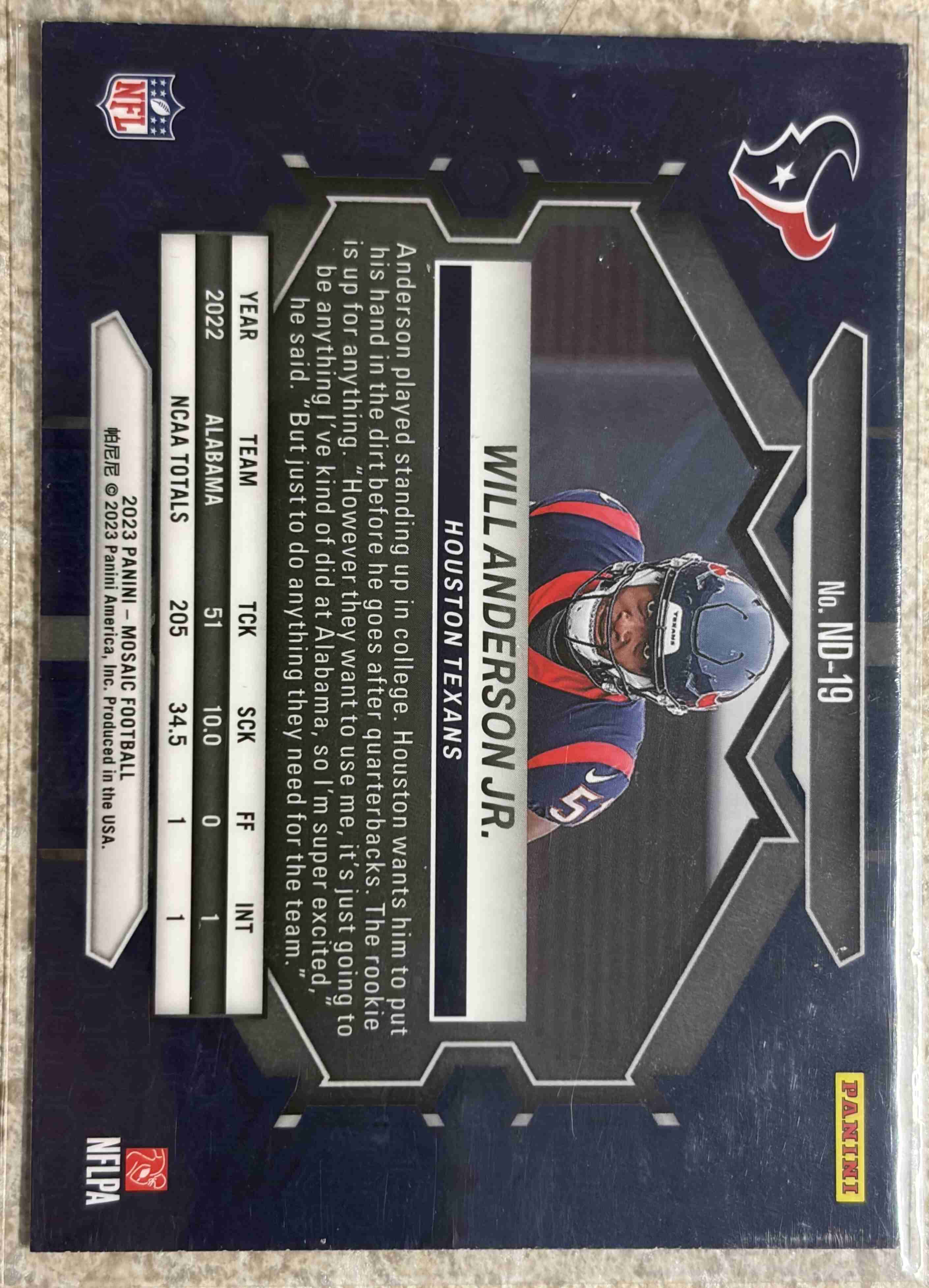 2023 Panini Football WILL ANDERSON RC's NRMT
