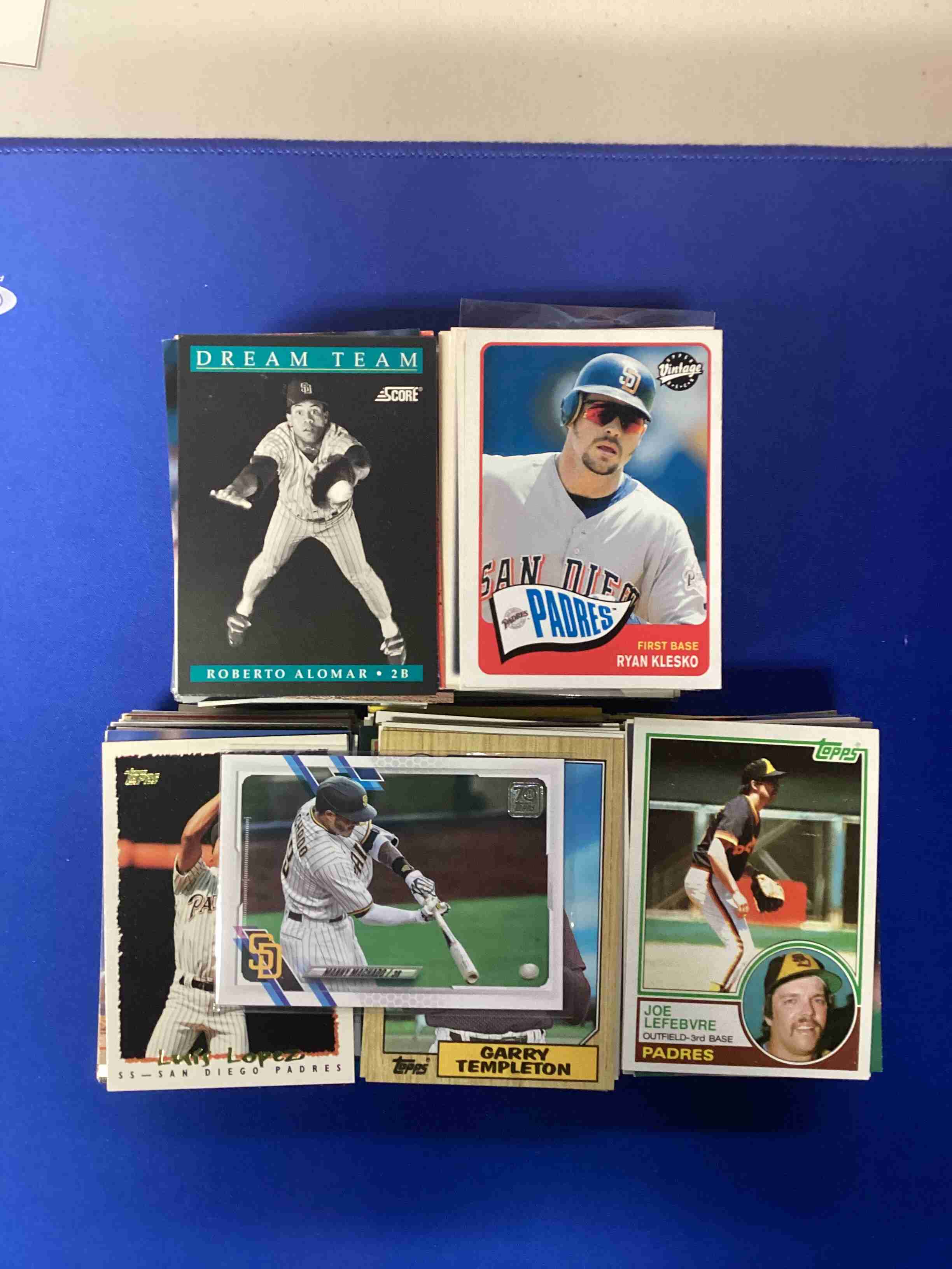 Padres only team clearance of over 500 cards! These are predominately 1980’s to present day of the Team Jersey. This lot includes base, inserts, rookies, semi stars, stars….essentially the whole enchilada for possibly less than the cost of a blaster!!