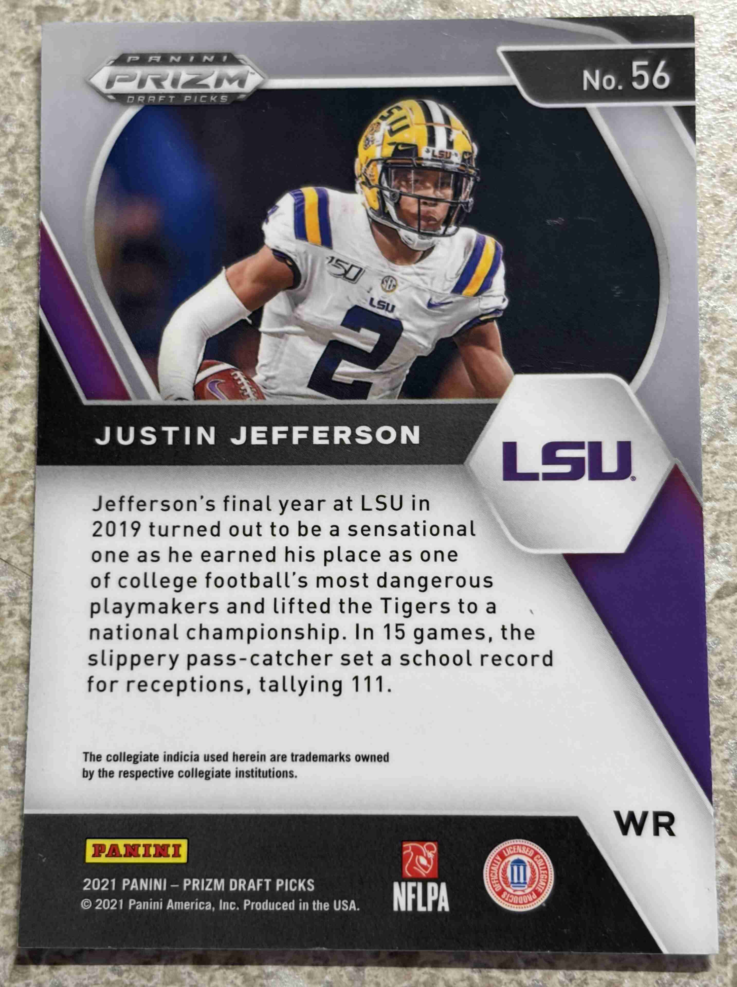 2021 Panini Prizm Draft Picks Collegiate Justin Jefferson #56 NTMT Shipped in PWE