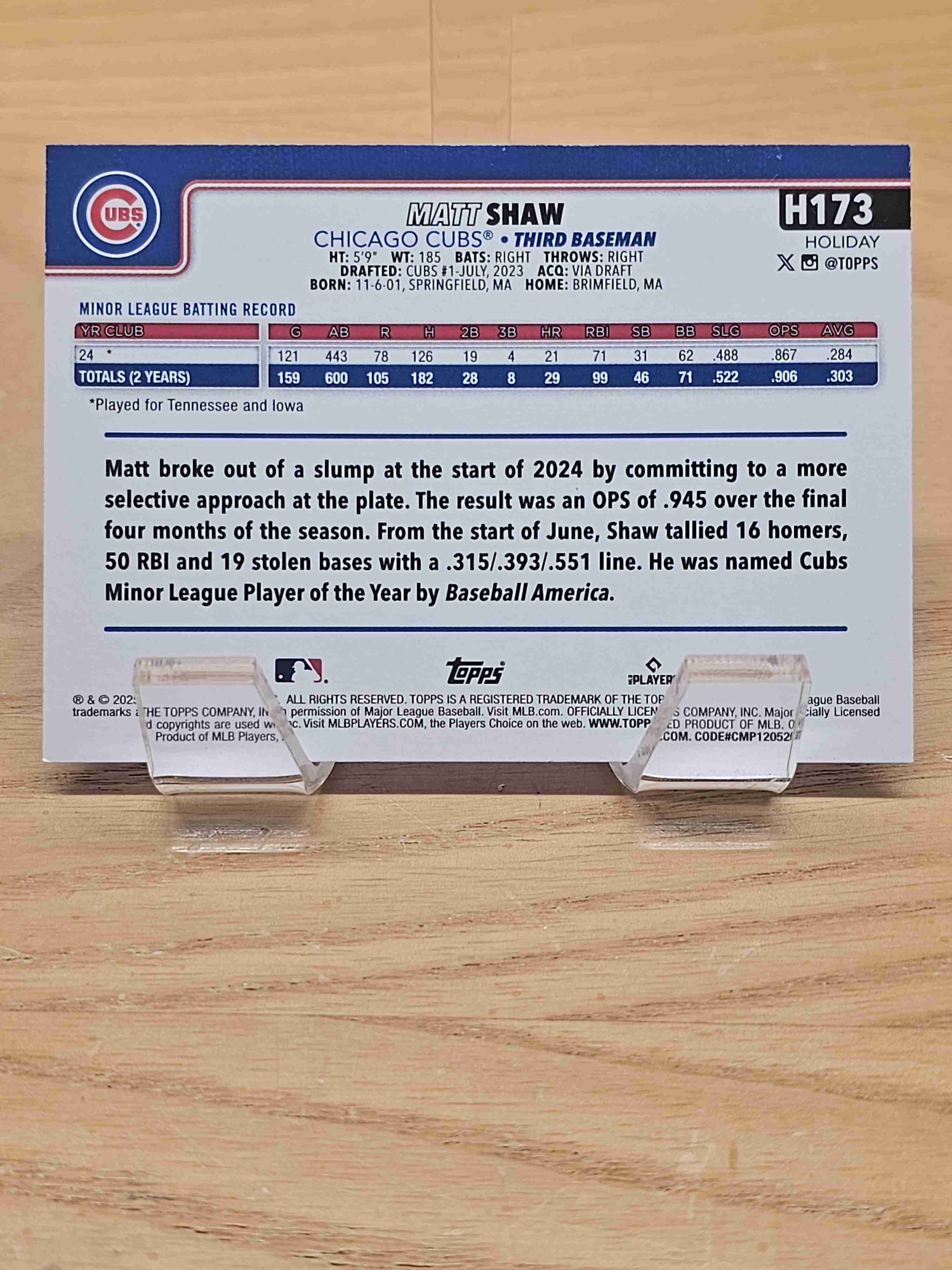 2025 Topps Holiday Baseball Rookie RC Matt Shaw Chicago Cubs Card #H173