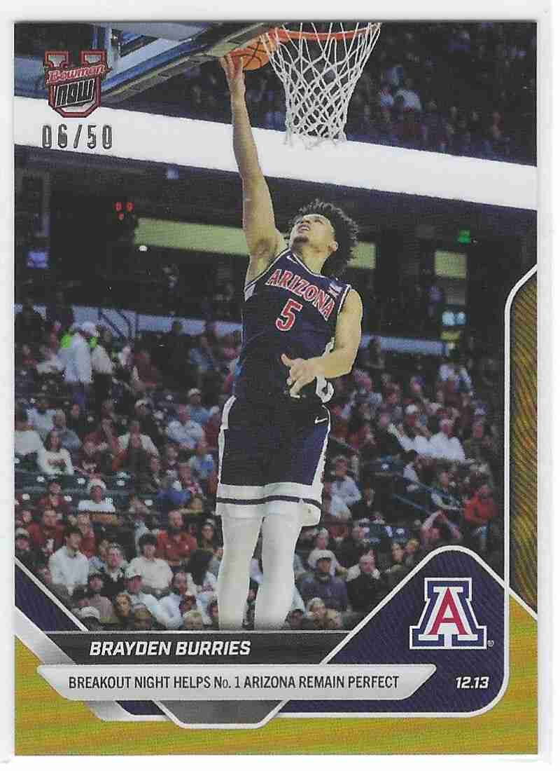 Lets not even talk about it. University of Arizona may win it all with Duke out of it. Brayden Burries is the best player. Pick up this card serial numbered 6/50. Pick it up before the value goes through the roof. Thanks for the support.