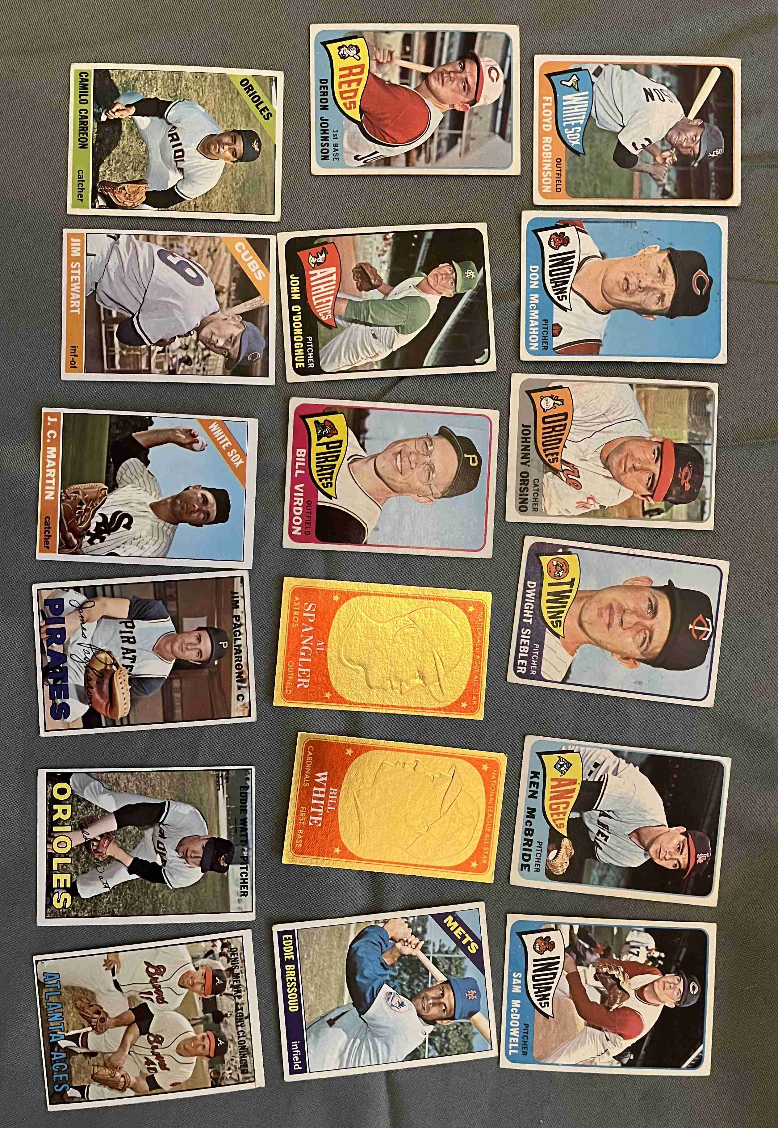 508 different Vintage Cards from 1958-1985. Includes 80 different HOF Cards: Rod Carew, Mike Schmidt, Eddie Murray, Carl Yastrzemski, Robin Yount, Gary Carter, Johnny Bench, Willie Stargell, Yogi Berra, Frank Robinson, Bert Blyleven, Dennis Eckersley, Lou Brock, Tony Gwynn, Ozzie Smith, Jim Palmer, Jim Rice, Dave Winfield, Phil Niekro, Jim Kaat, Ryne Sandberg, Tony Perez, Billy Williams, Steve Carlton, Reggie Jackson, Tom Seaver, George Brett, Luis Tiant, Bruce Sutter, Andre Dawson, Lou Piniella, Dave Parker, Fergie Jenkins, Don Sutton, Rich Gossage, Earl Weaver, & Ralph Houk. Breakdown: 1958 to 1969-61, 1970 to 1979-148, 1980 to 1985-299. Some of the early cards are off-grade.