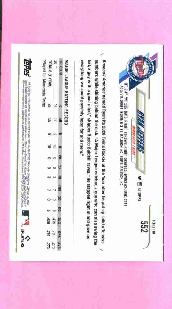 Ryan Jeffers #552 [Rookie] 2021 Topps