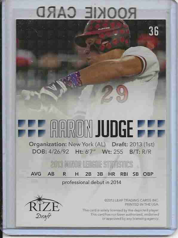 2013 Rize Baseball Card Aaron Judge ROOKIE O/F NY Yankees