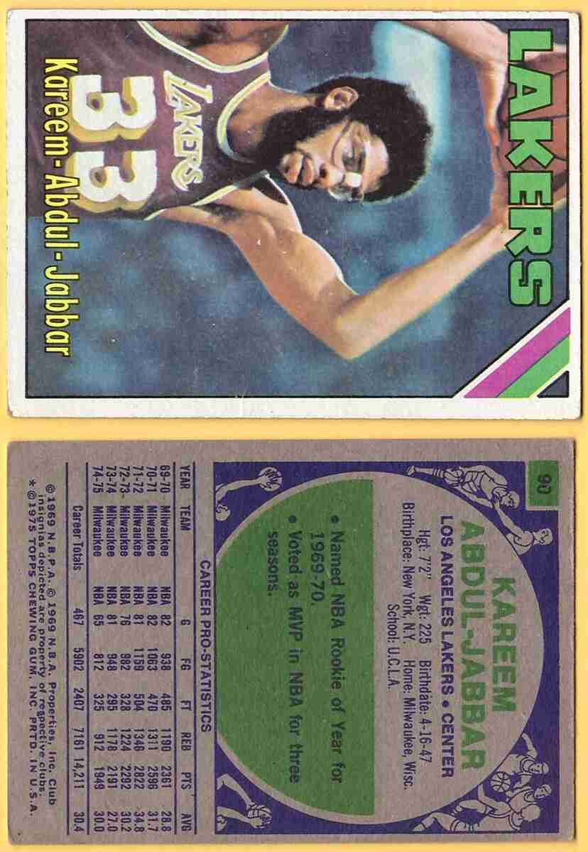1975-76 Topps #90 Kareem Abdul-Jabbar <====> [SL287] refer to pictures for condition/grade of card =================================================