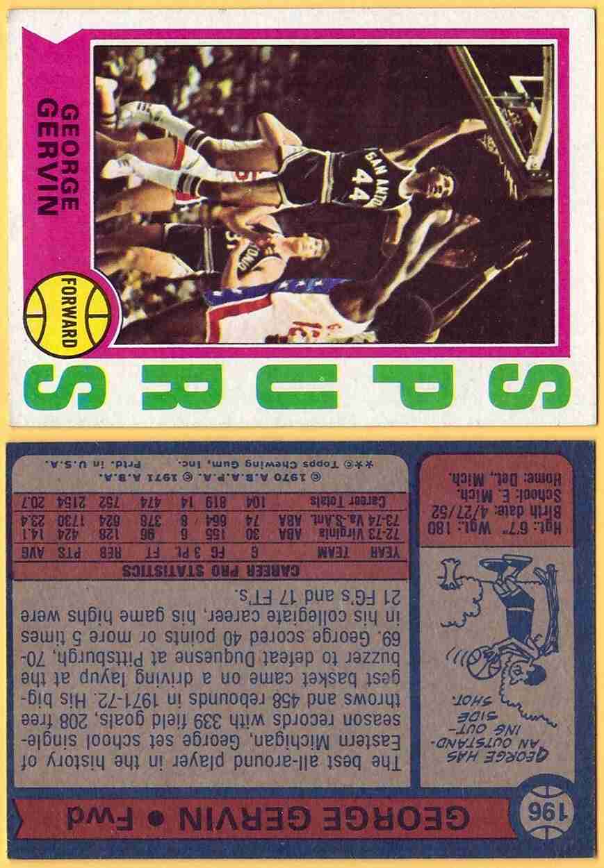 1974-75 Topps #196 George Gervin RC <====> [SL288] refer to pictures for condition/grade of card =================================================