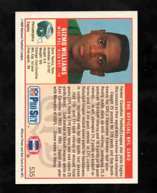 1989 Pro Set # 535 GIZMO WILLIAMS RC Eagles NM/M
