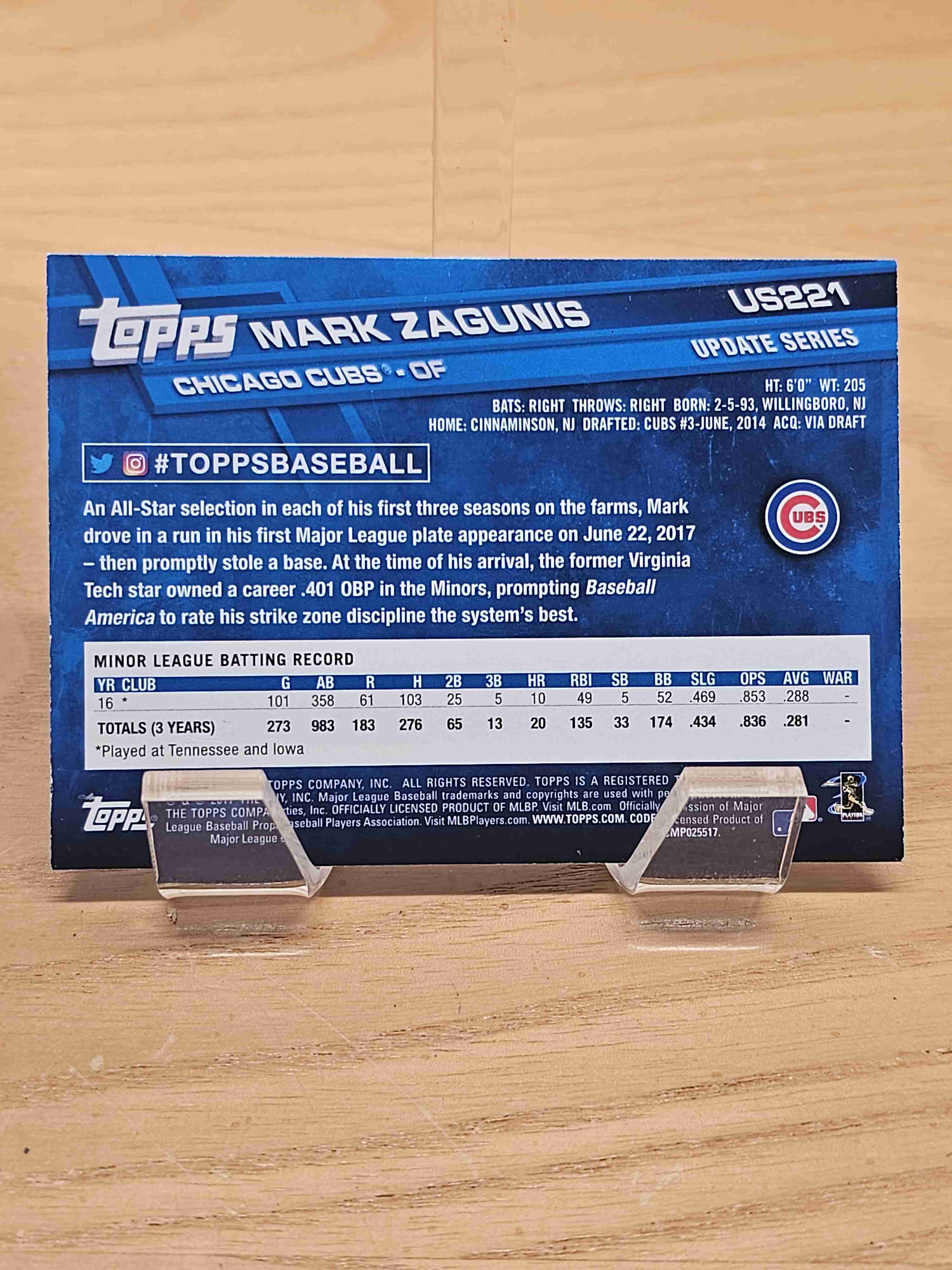 2017 Topps Update Series Baseball Rainbow Foil Rookie RC Mark Zagunis Chicago Cubs Card #US221