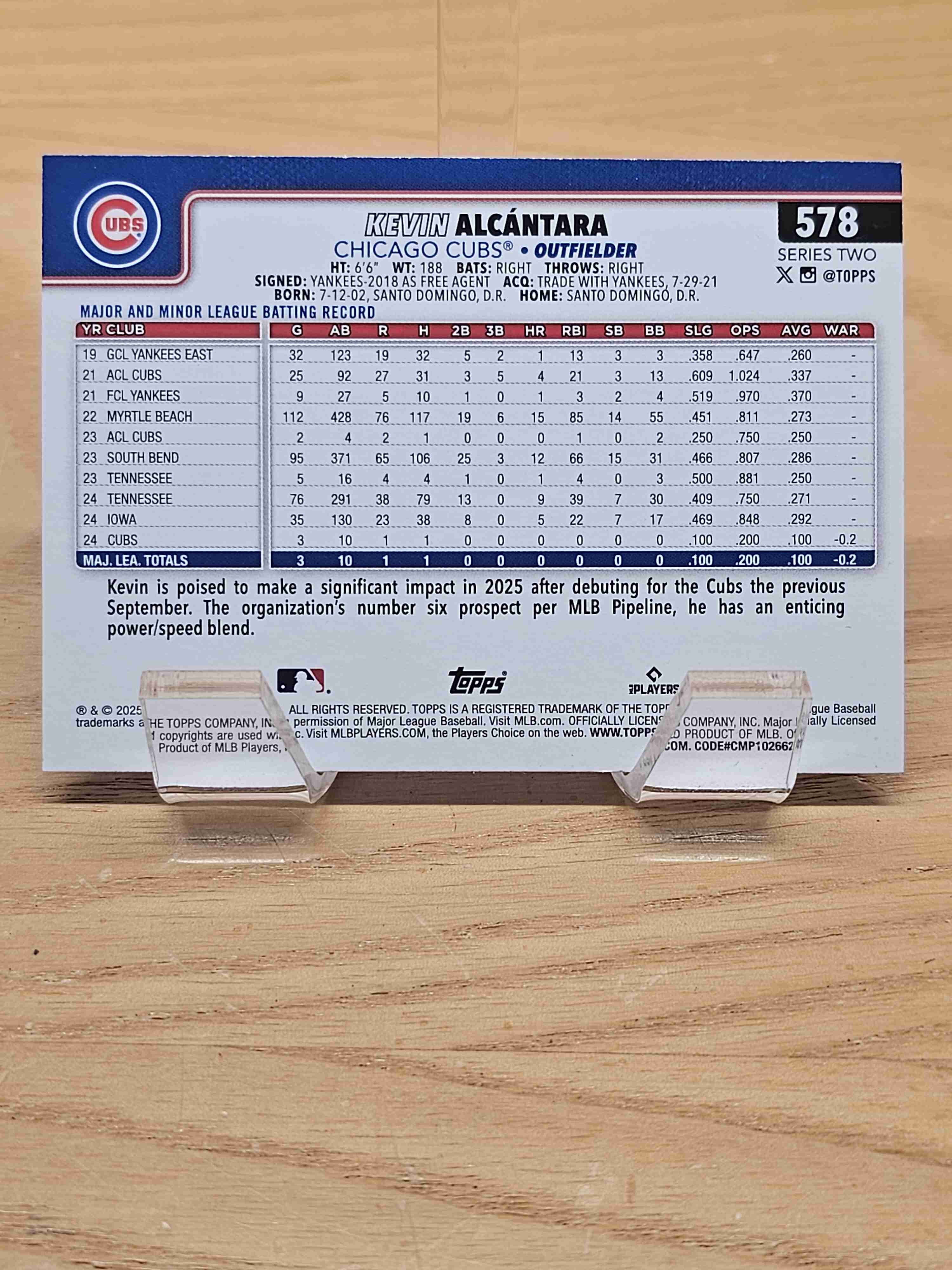 2025 Topps Series Two Rookie RC Kevin Alcantara Cubs #578